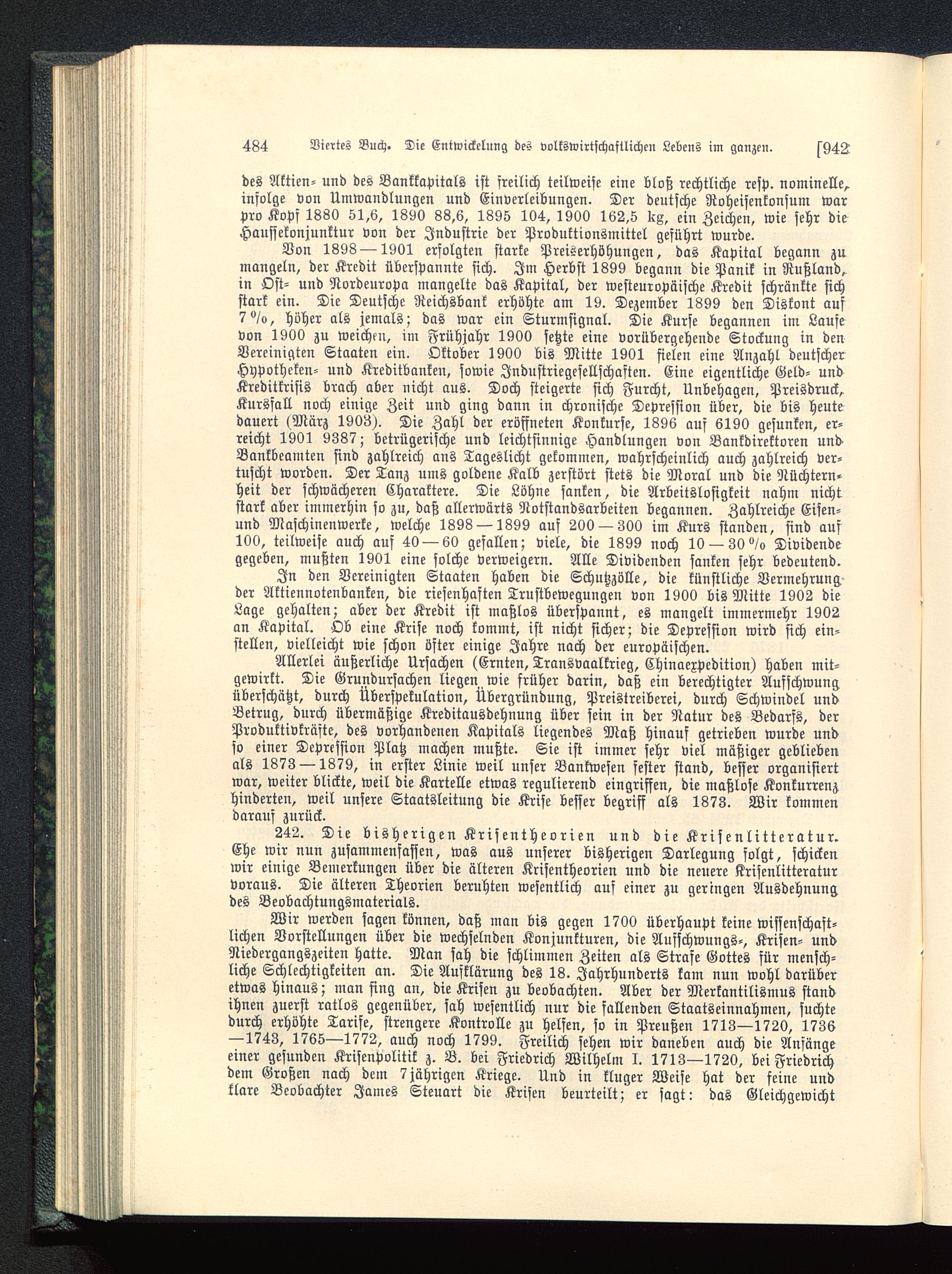 242. Die bisherigen Krisentheorien und die Krisenlitteratur.Ehe wir nun zusammenfassen, was aus unserer bisherigen Darlegung folgt, fchickenwir einige Bemerkungen über die älteren Krisentheorien und die neuere Krisenlitteraturvoraus. Die älteren Theorien beruhten wesentlich auf einer zu geringen Ausdehnungdes Beobachtungsmaterials.