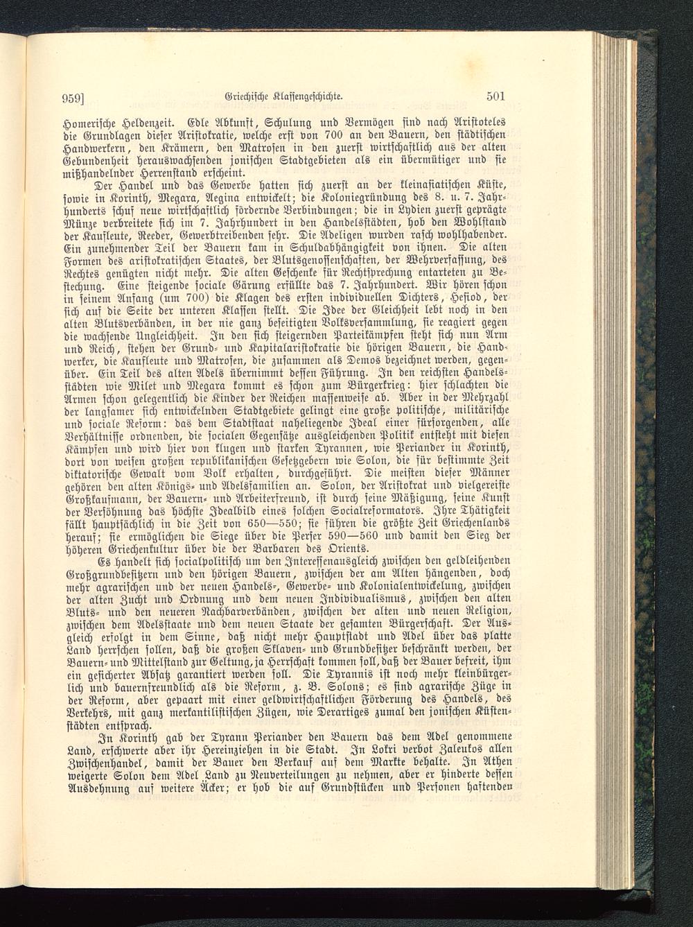 In Korinth gab der Tyrann Periander den Bauern das dem Adel genommeneLand, erschwerte aber ihr Hereinziehen in die Stadt. In Lokri verbot Zaleukos allenZwischenhandel, damit der Bauer den Verkauf auf dem Markte behalte. In Athen weigerte Solon dem Adel.Land zu Neuverteilungen zu nehmen, aber er hinderte defsenAusdehnung auf weitere Äcker; er hob die auf Grundstücken und Personen hastenden