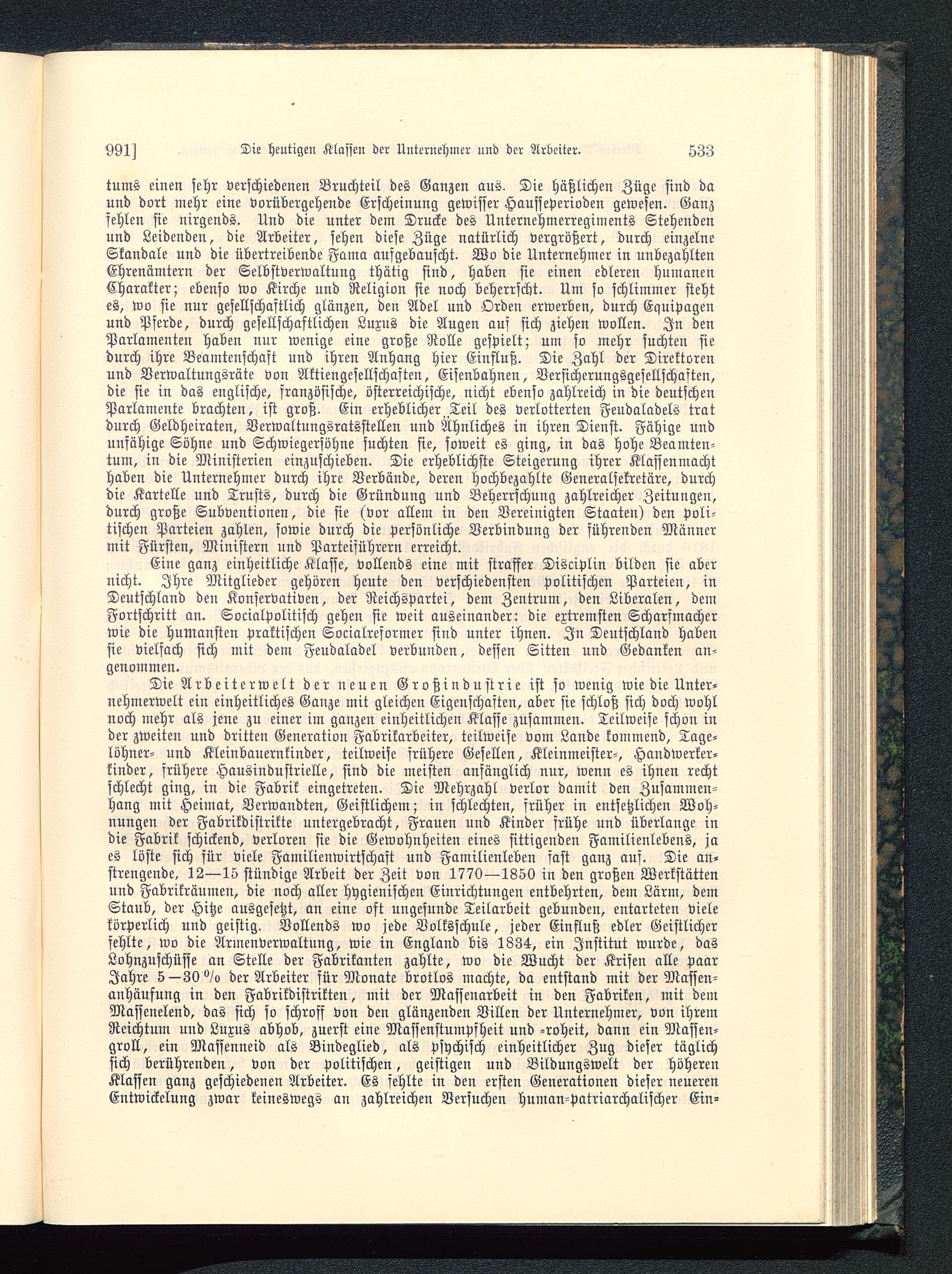 Eine ganz einheitliche Klaffe, vollends eine mit straffer Disciplin bilden sie abernicht. Ihre Mitglieder gehören heute den verschiedensten politischen Parteien, inDeutschland den Konservativen, der Reichspartei, dem Zentrum, den Liberalen, demFortschritt an. Socialpolitisch gehen sie weit auseinander: die extremsten Scharfmacherwie die humansten praktischen Socialreformer sind unter ihnen. In Deutschland habensie vielfach sich mit dem Feudaladel verbunden, dessen Sitten und Gedanken an-genommen.