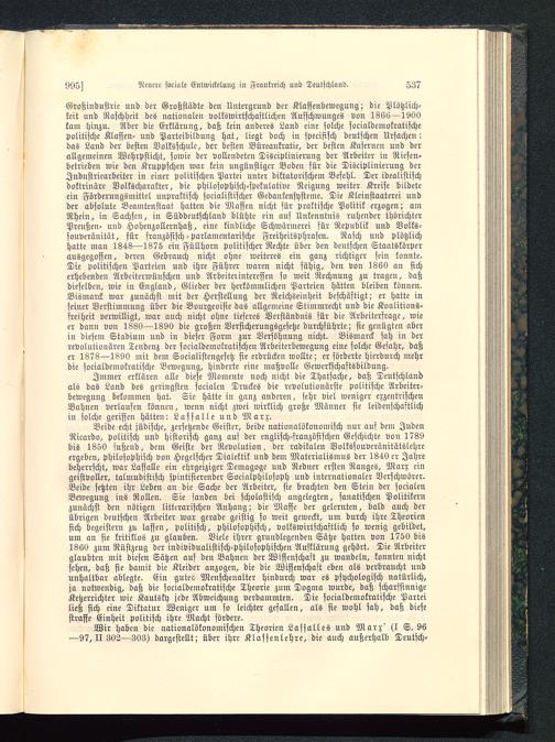 Wir haben die nationalökonomischen Theorien Lassalles und Marx' (I S. 96—97,11 302—303) dargestellt; über ihre Klassenlehre, die auch außerhalb Deutsch -