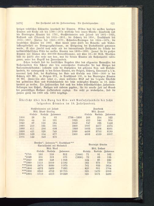 Übersicht über den Gang des Ein- und Ausfuhrhandels der sechsfolgenden Staaten im 19. Jahrhundert.