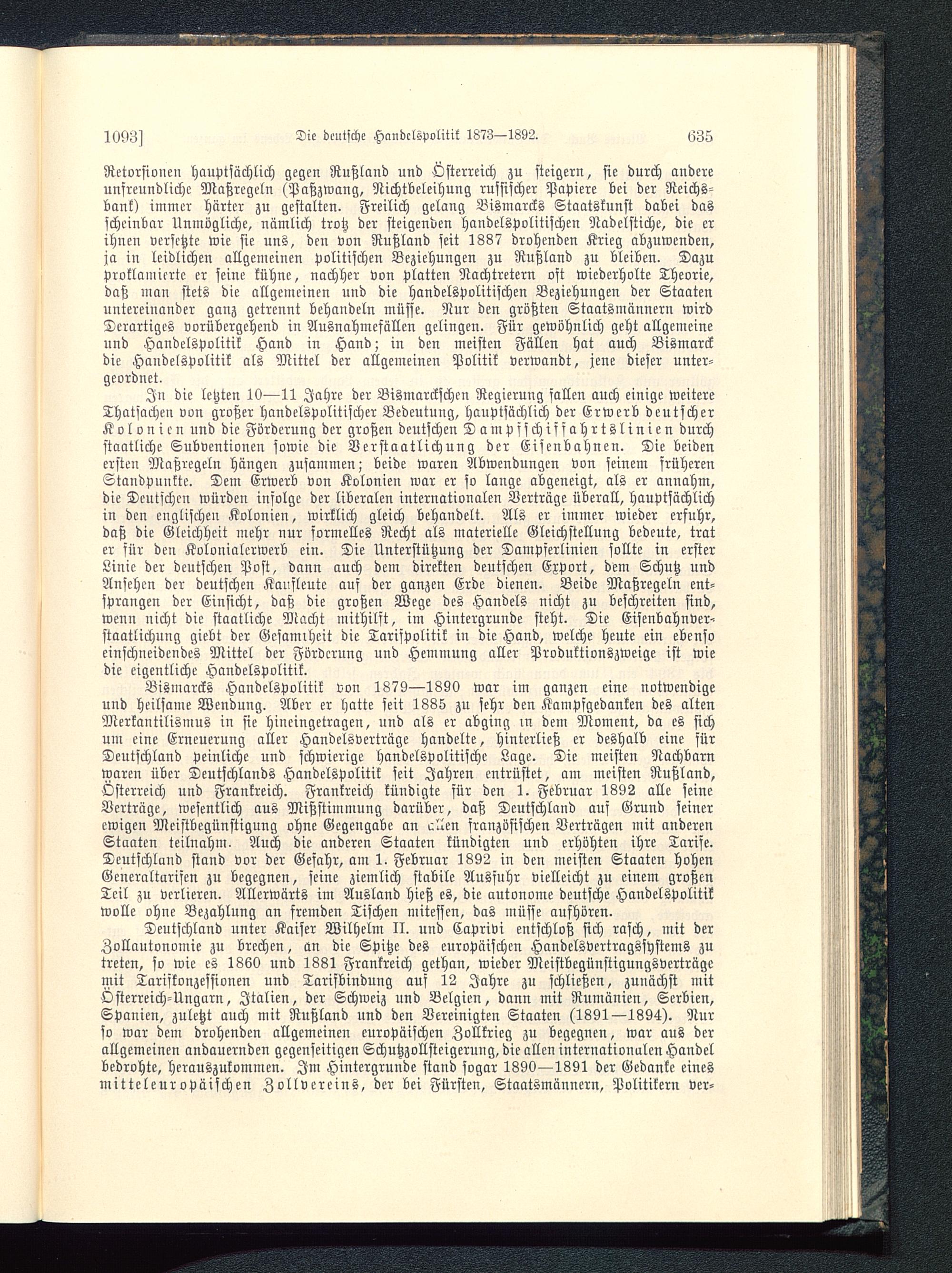Bismarcks Handelspolitik von 1879—1890 war im ganzen eine notwendigeund heilsame Wendung. Aber er hatte seit 1885 zu sehr den Kampfgedanken des altenMerkantilismus in sie hineingetragen, und als er abging m dem Moment, da es sichum eine Erneuerung aller Handelsverträge handelte, hinterließ er deshalb eine sürDeutschland peinliche und schwierige handelspolitische Lage. Die meisten Nachbarnwaren über Deutschlands Handelspolitik seit Jahren entrüstet, am meisten Rußland ,Österreich und Frankreich. Frankreich kündigte sür den 1. Februar 1892 alle seineVerträge, wesentlich aus Mißstimmung darüber, daß Deutschland auf Grund seinerewigen Meistbegünstigung ohne Gegengabe an cllen französischen Verträgen mit anderenStaaten teilnahm. Auch die anderen Staaten kündigten und erhöhten ihre Tarife.Deutschland stand vor der Gefahr, am 1. Februar 1892 in den meisten Staaten hohenGeneraltarifen zu begegnen, seine ziemlich stabile Ausführ vielleicht zu einem großenTeil zu verlieren. Allerwärts im Ausland hieß es, die autonome deutsche Handelspolitikwolle ohne Bezahlung an fremden Tischen mitessen, das müsse aufhören.