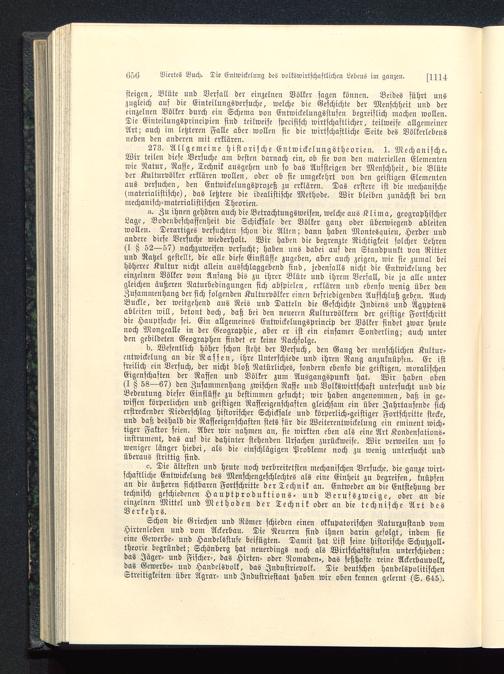 273. Allgemeine historische Entwickclungstheorien. 1. Mechanische.Wir teilen diese Versuche am besten darnach ein, ob sie von den materiellen Elementenwie Natur, Rasse, Technik ausgehen und fo das Aufsteigen der Menschheit, die Blüteder Kulturvölker erklären wollen, oder ob sie umgekehrt von den geistigen Elementenaus versuchen, den Entwickelungsprozeß zu erklären. Das erstere ist die mechanische(materialistische), das letztere die idealistische Methode. Wir bleiben zunächst bei denmechanisch-materialistischen Theorien.