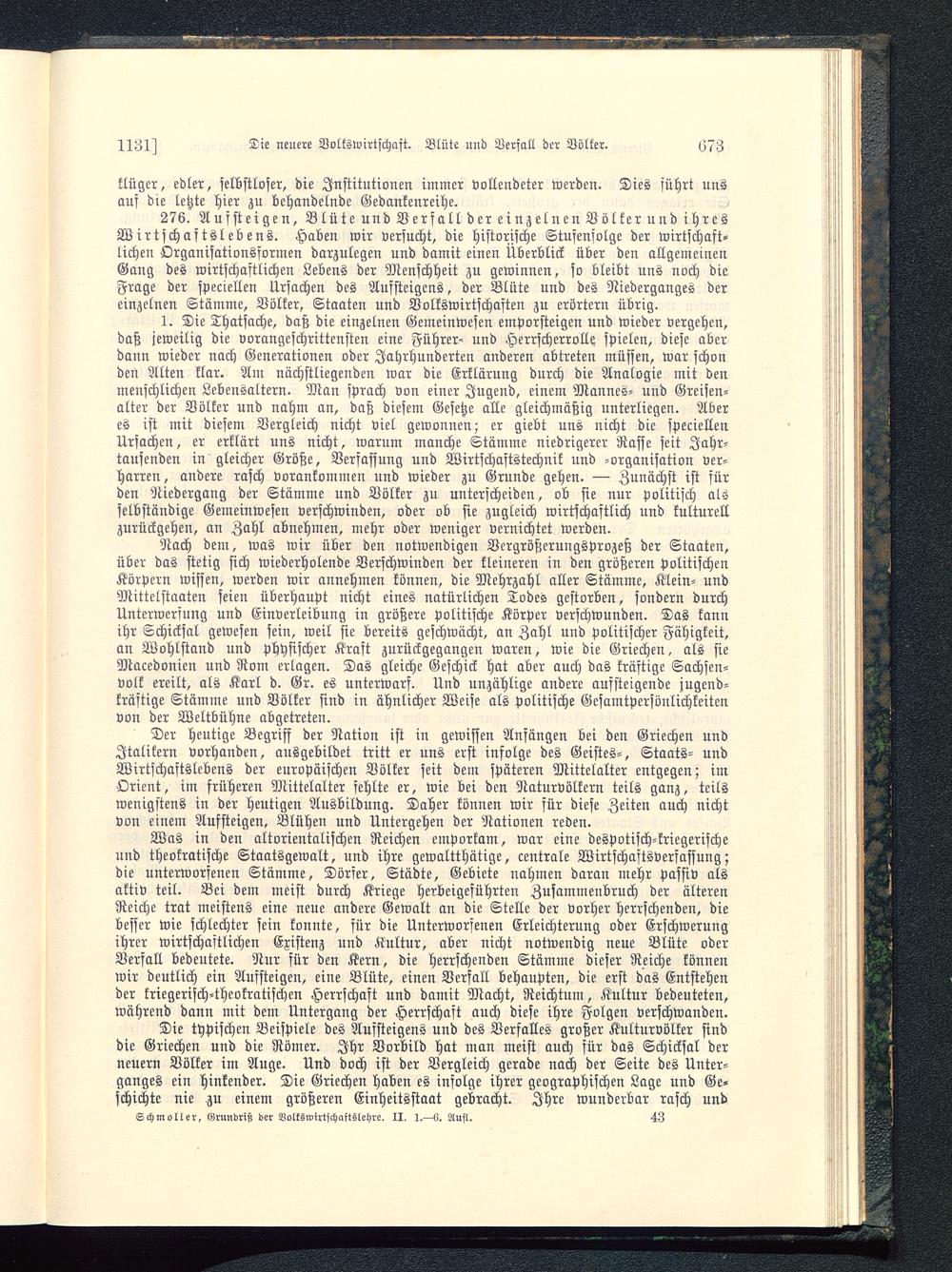 276. Aufsteigen, Blüte und Verfall der einzelnen Völker und ihresWirtschaftslebens. Haben wir versucht, die historische Stufenfolge der wirtschaft-lichen Organisationsformen darzulegen und damit einen Überblick über den allgemeinenGang des wirtschaftlichen Lebens der Menschheit zu gewinnen, so bleibt nns noch dieFrage der speciellen Ursachen des Auffteigens, der Blüte und des Niederganges dereinzelnen Stämme, Völker, Staaten und Volkswirtschaften zu erörtern übrig.