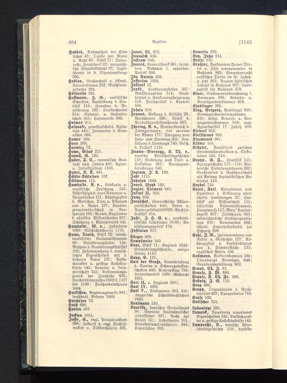 Krupp, Organisation d. Groß-betriebs 433; Sparprämien 710.Kruse 529.Kulischer 751.