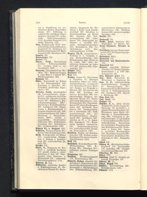 San, I. individualistischeNationalökonomie, Hauptwerk91; Arbeitszerlegung 351;Kavitalbegriff.dreiProduktions-faktoien u. Einkommenszweige636: Zinstheorie 662: Theoried. Absatzwege 943.