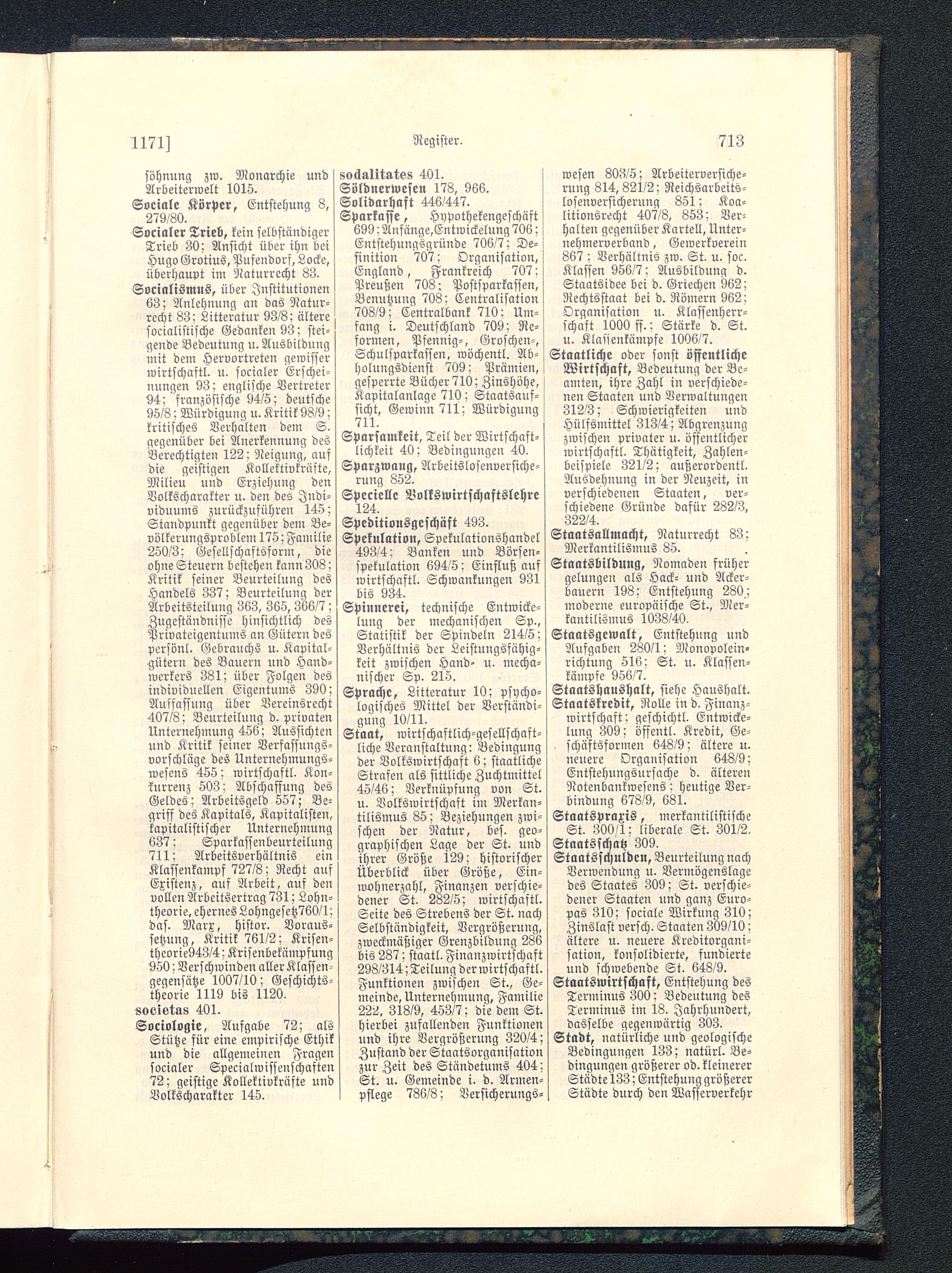 Staatswirtschaft, Entstehung desTerminus 300; Bedeutung desTerminus im 18. Jahrhundert,dasselbe gegenwärtig 303.