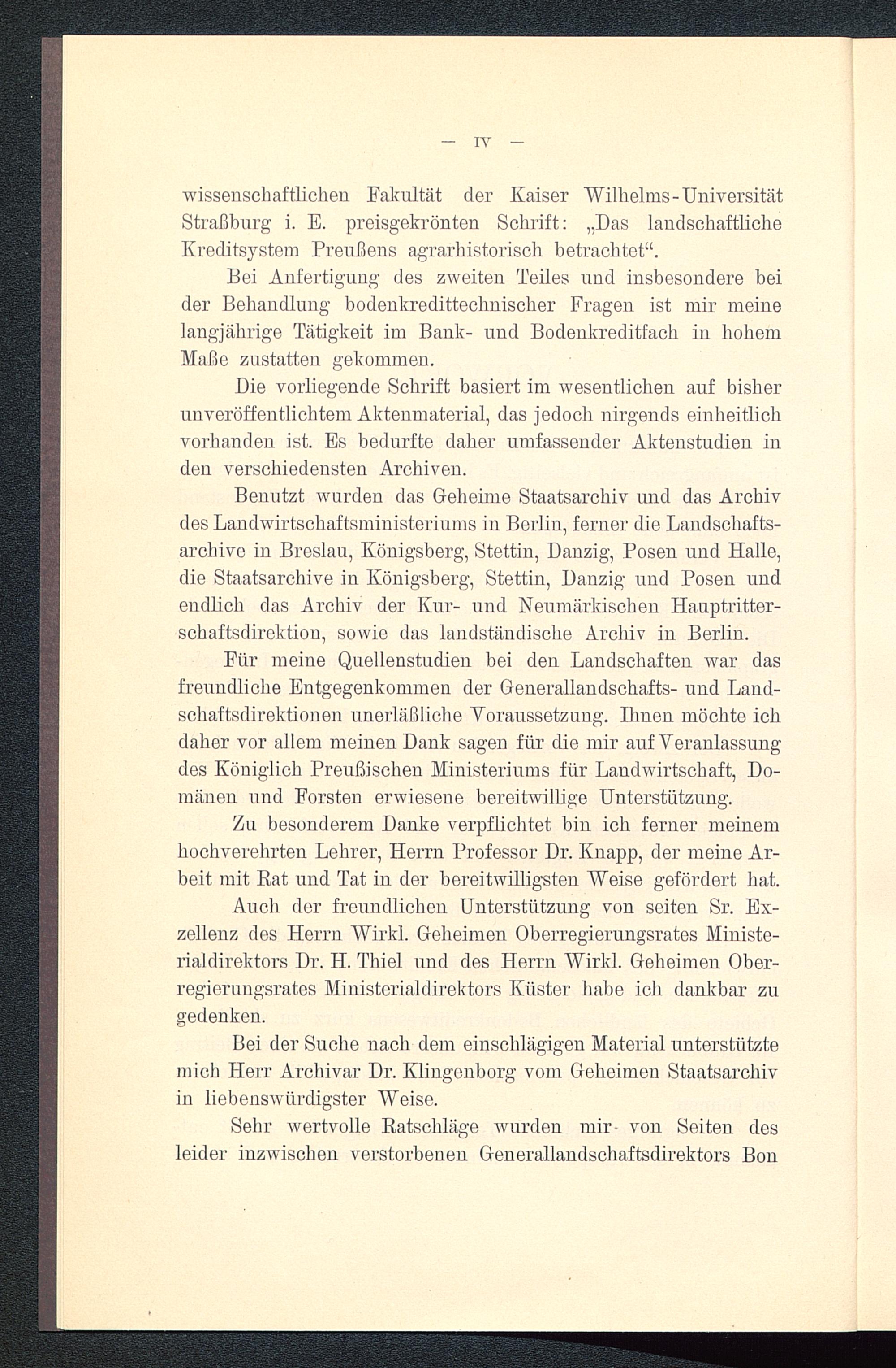 wissenschaftlichen Fakultät der Kaiser Wilhelms-UniversitätStraßburg i. E. preisgekrönten Schrift: „Das landschaftlicheKreditsystem Preußens agrarhistorisch betrachtet“.