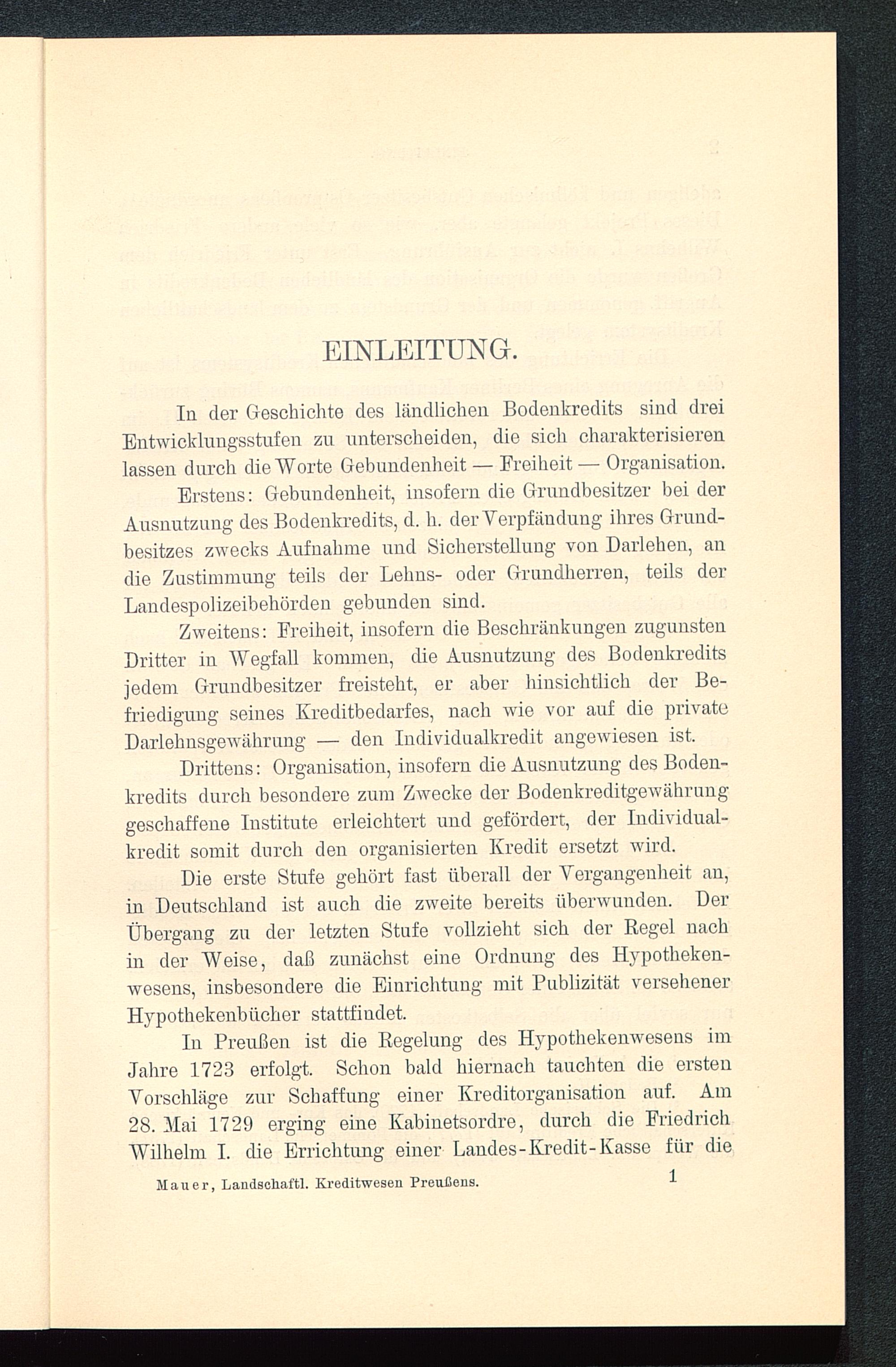 Drittens: Organisation, insofern die Ausnutzung des Boden-kredits durch besondere zum Zwecke der Bodenkreditgewährunggeschaffene Institute erleichtert und gefördert, der Individual-kredit somit durch den organisierten Kredit ersetzt wird.