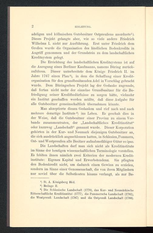 adeligen und köllmischen Gutsbesitzer Ostpreußens anordnete 1 ).Dieses Projekt gelangte aber, wie so viele andere FriedrichWilhelms I. nicht zur Ausführung. Erst unter Friedrich demGroßen wurde die Organisation des ländlichen Bodenkredits inAngriff genommen und der Grundstein zu dem landschaftlichenKreditsystem gelegt.