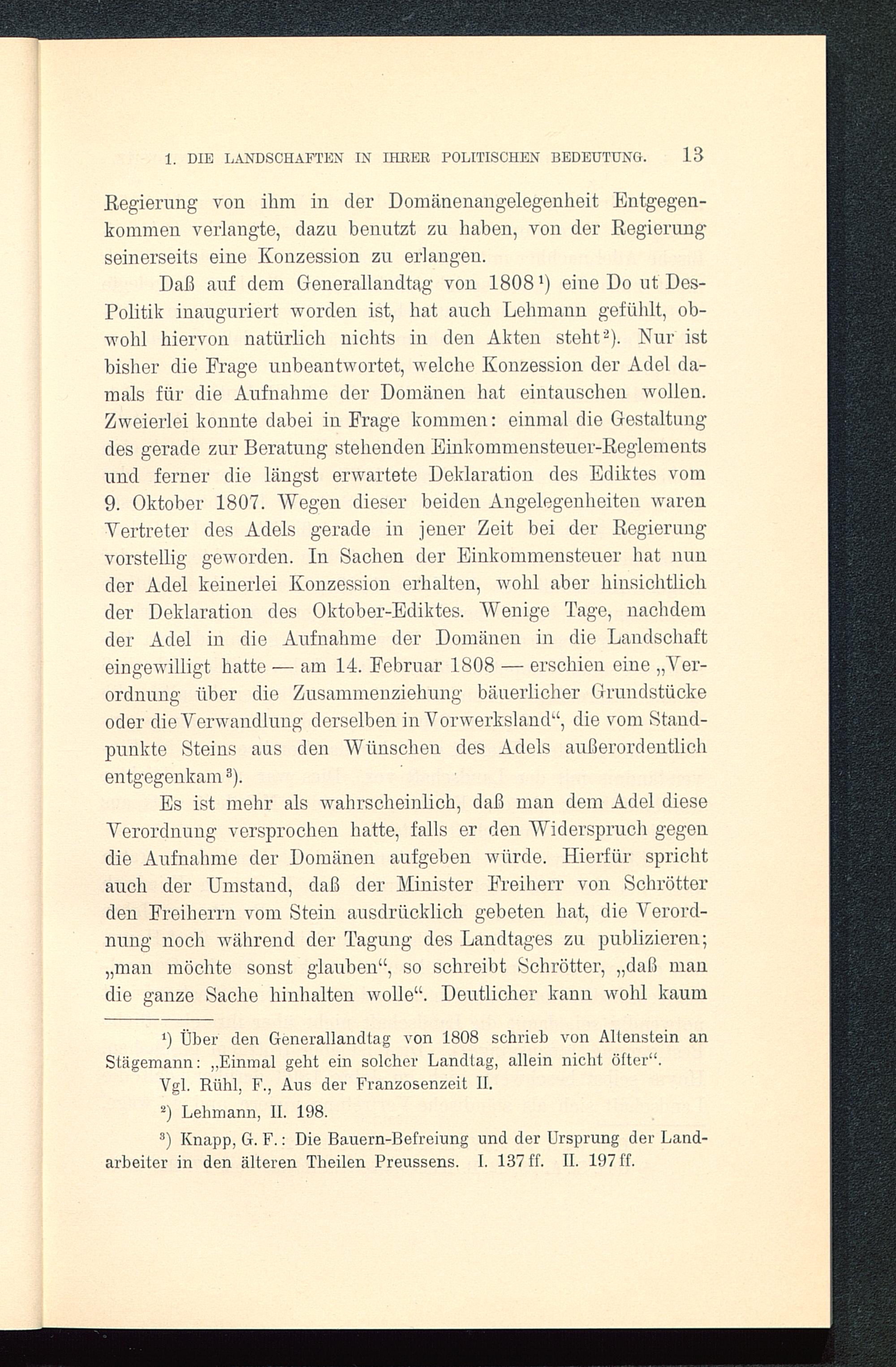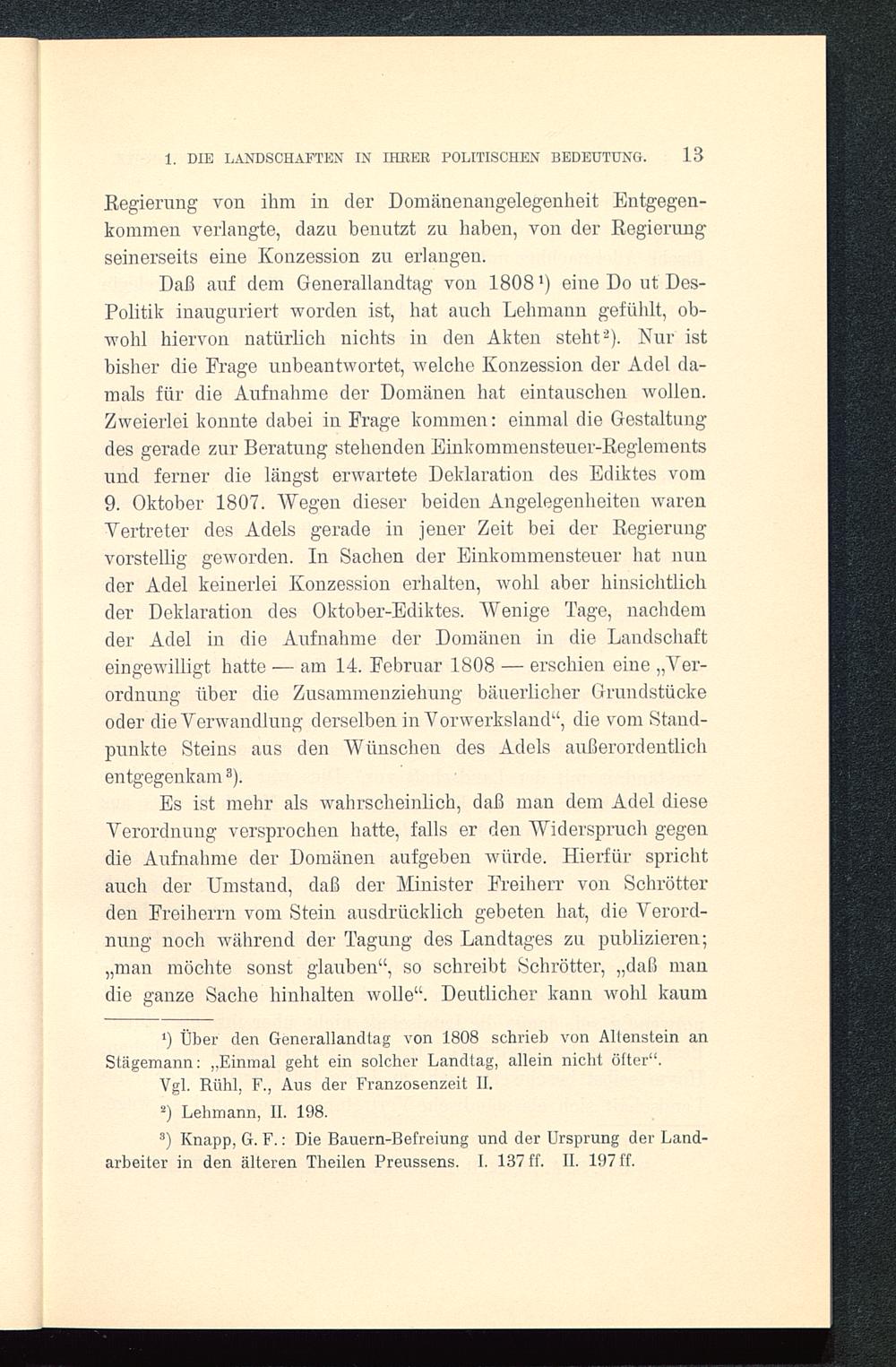 3 ) Knapp, G. F.: Die Bauern-Befreiung und der Ursprung der Land-arbeiter in den älteren Theilen Preussens. I. 137 ff. II. 197 ff.