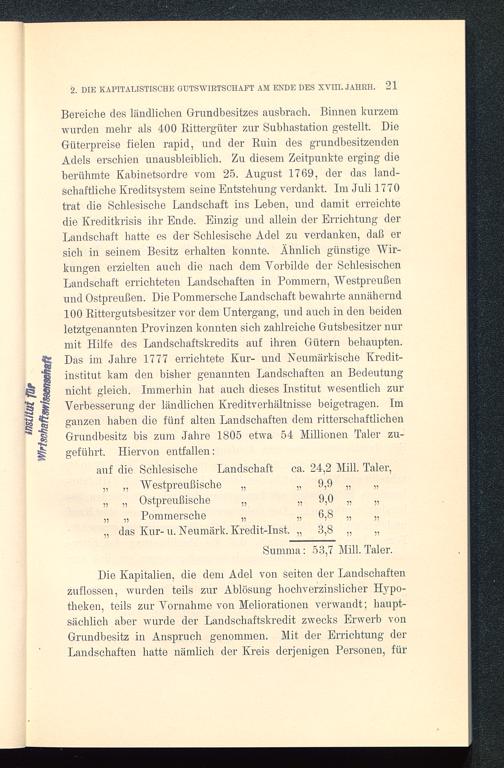 2. DIE KAPITALISTISCHE GUTS WIRTSCHAFT AM ENDE DES XYm. JAHRH. 21