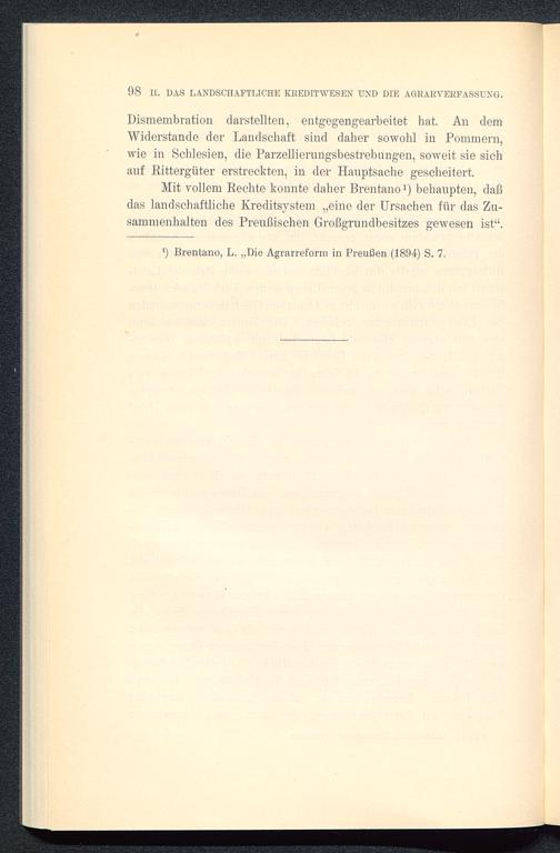 Mit vollem Rechte konnte daher Brentano 1 ) behaupten, daßdas landschaftliche Kreditsystem „eine der Ursachen für das Zu-sammenhalten des Preußischen Großgrundbesitzes gewesen ist“.
