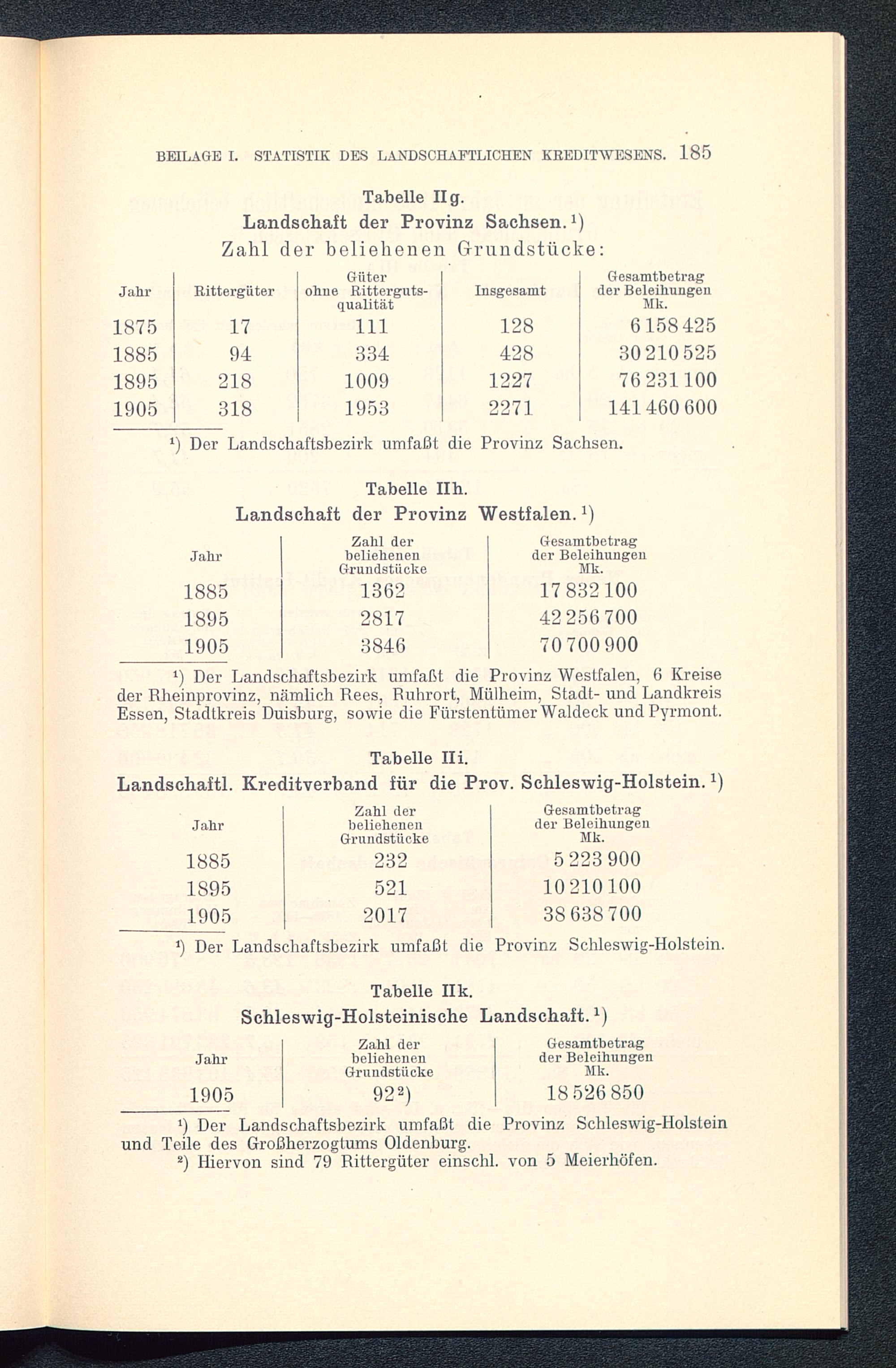 BEILAGE I. STATISTIK DES LANDSCHAFTLICHEN KREDITWESENS. 185