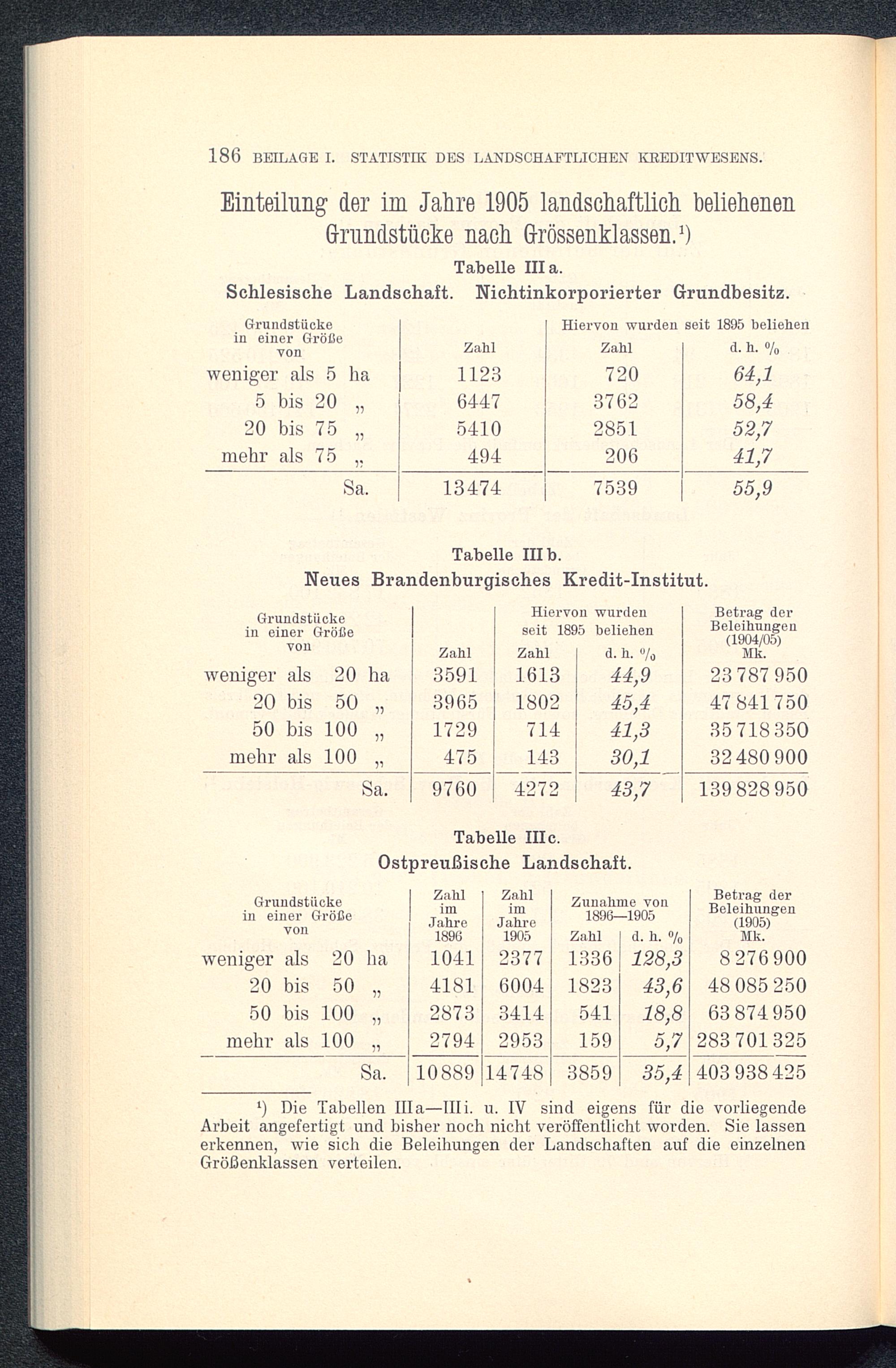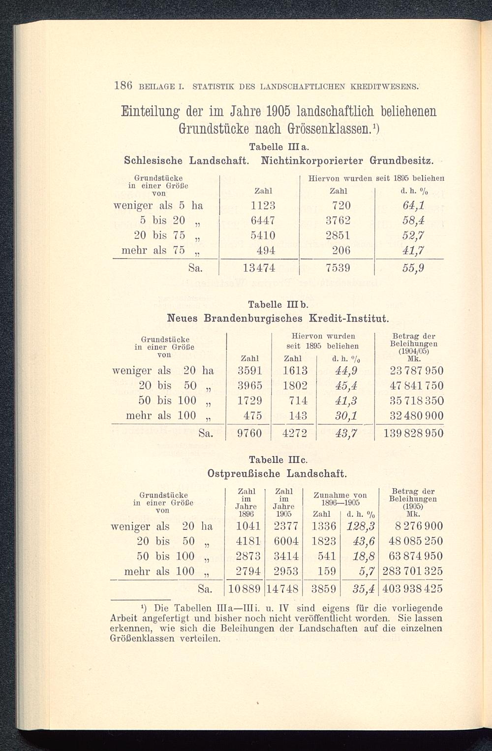 l ) Die Tabellen lila—IIIi. u. IV sind eigens für die vorliegendeArbeit angefertigt und bisher noch nicht veröffentlicht worden. Sie lassenerkennen, wie sich die Beleihungen der Landschaften auf die einzelnenGrößenklassen verteilen.