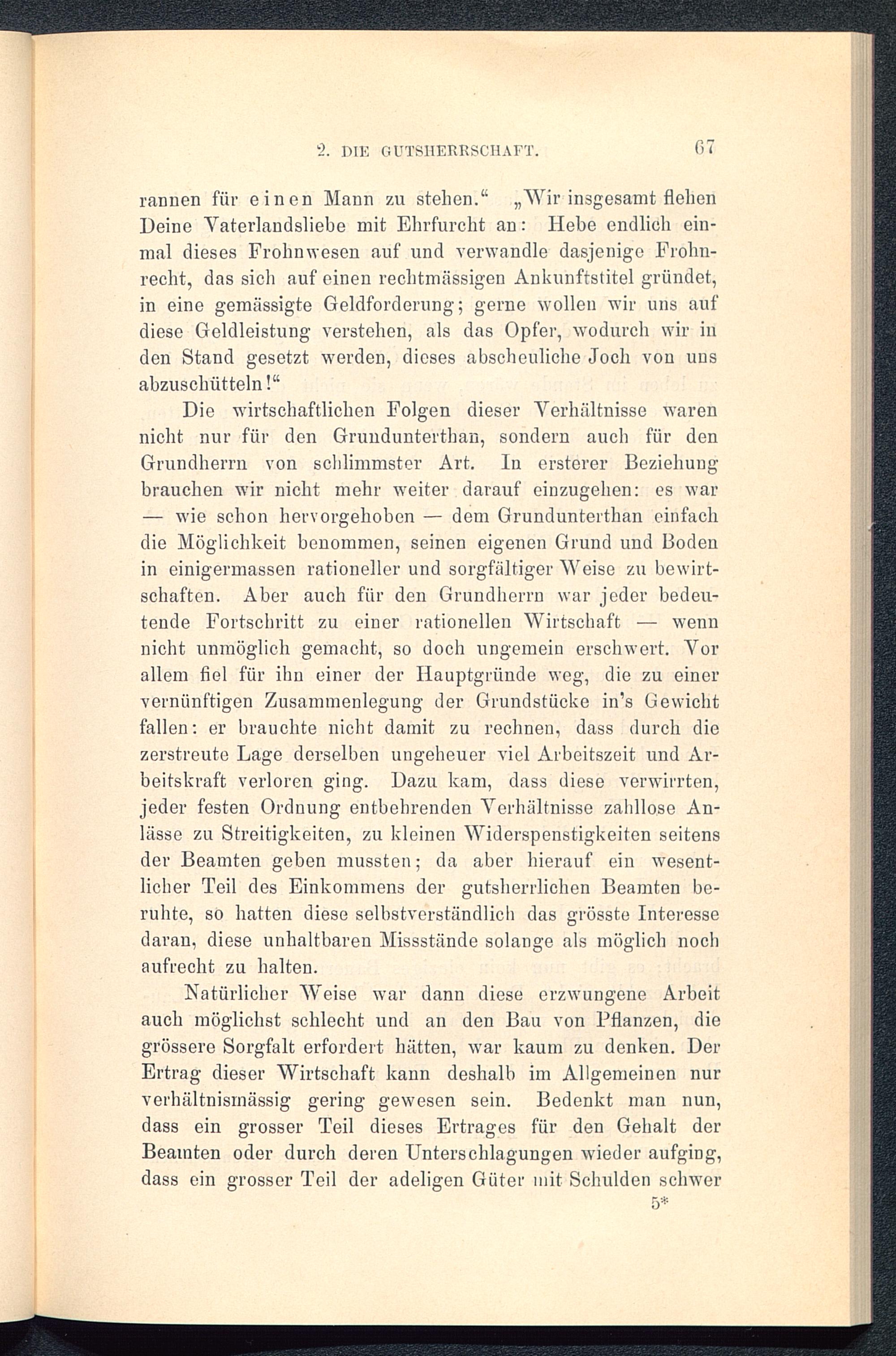 Natürlicher Weise war dann diese erzwungene Arbeitauch möglichst schlecht und an den Bau von Pflanzen, diegrössere Sorgfalt erfordert hätten, war kaum zu denken. DerErtrag dieser Wirtschaft kann deshalb im Allgemeinen nurverhältnismässig gering gewesen sein. Bedenkt man nun,dass ein grosser Teil dieses Ertrages für den Gehalt derBeamten oder durch deren Unterschlagungen wieder aufging,dass ein grosser Teil der adeligen Güter mit Schulden schwer