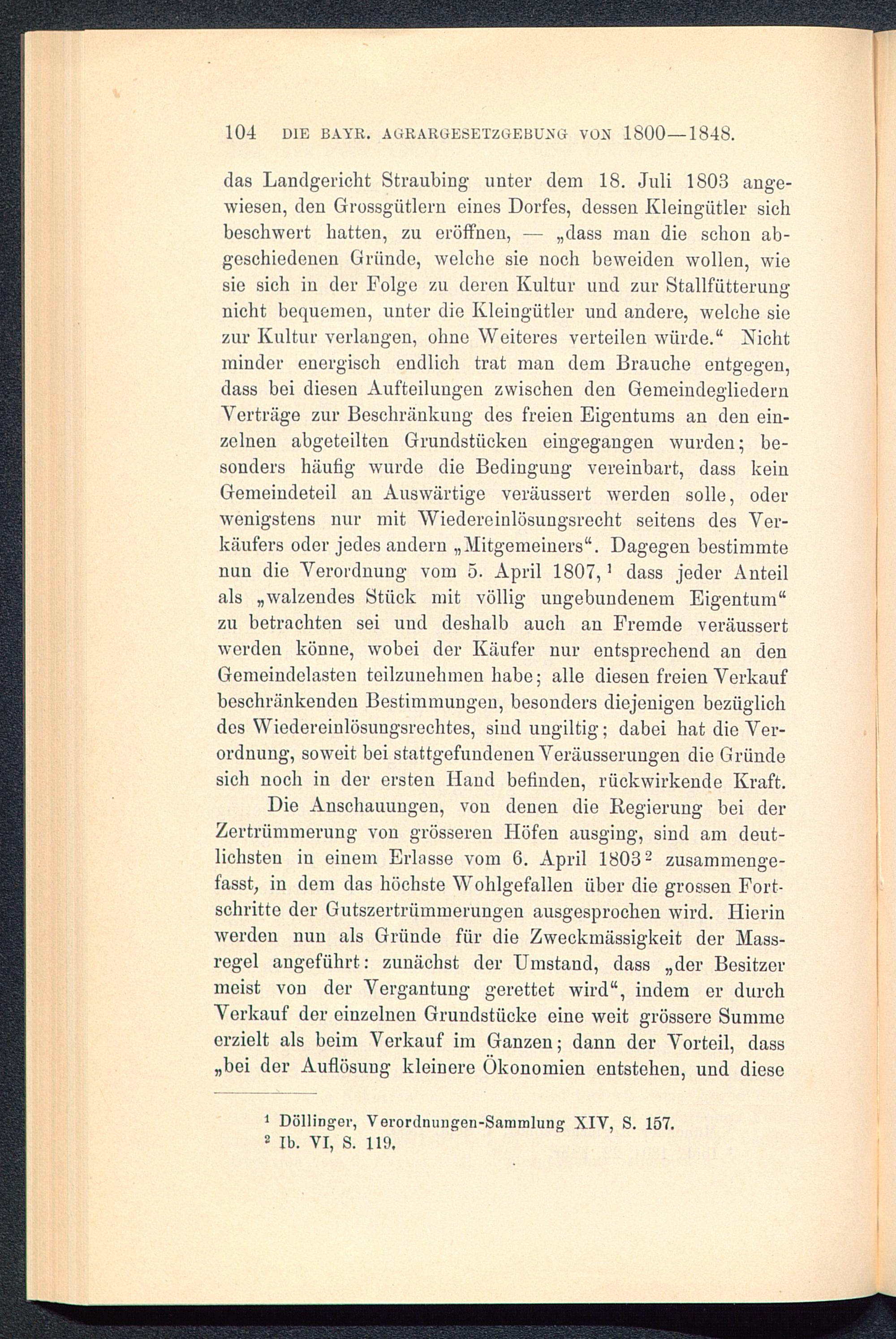 104 DIE BAYR. AGRARGESETZGEBUNG VON 1800—1848.