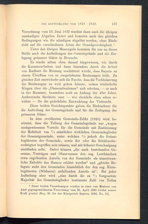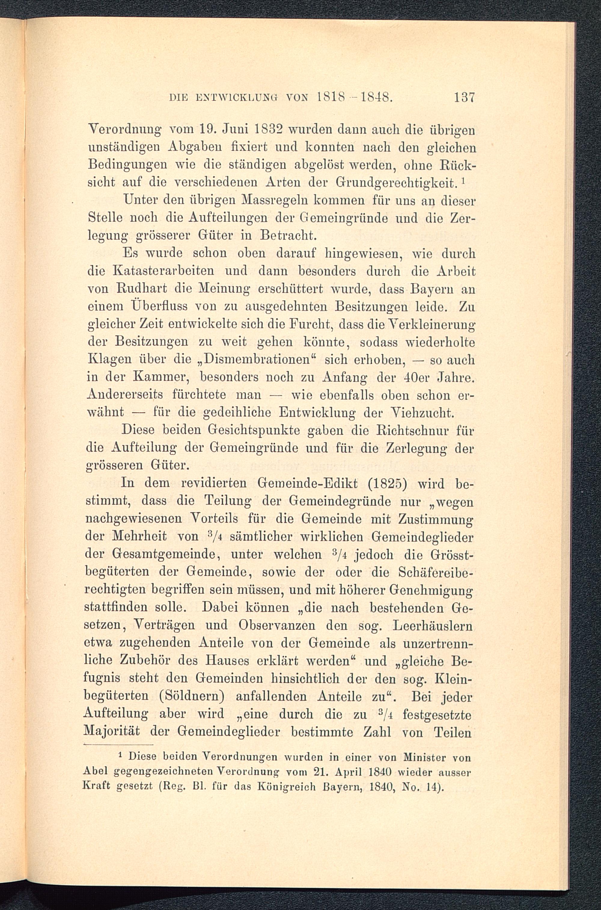 1 Diese beiden Verordnungen wurden in einer von Minister vonAbel gegengezeichneten Verordnung vom 21. April 1840 wieder ausserKraft gesetzt (Reg. Bl. für das Königreich Bayern, 1840, No. 14).