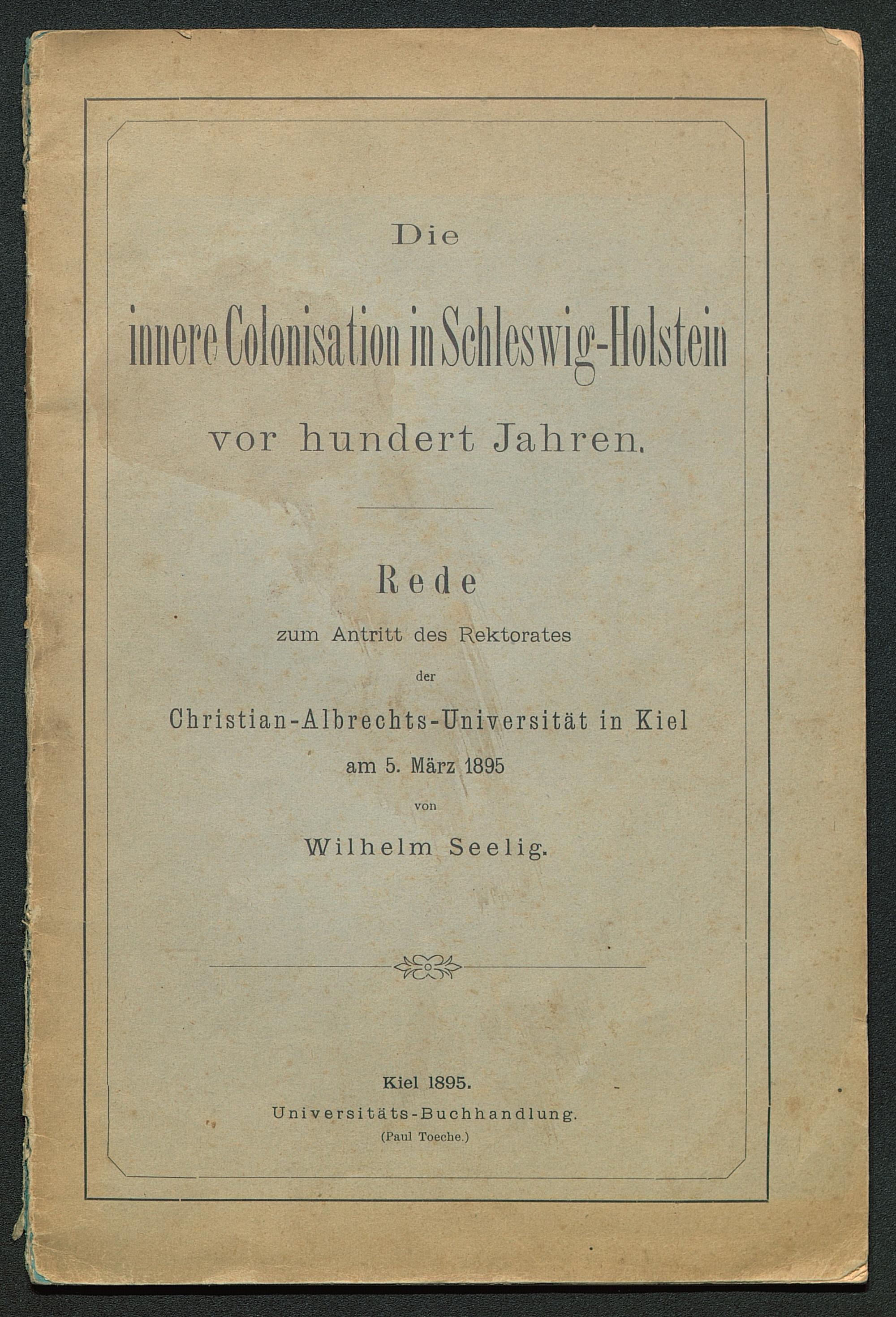 DieÖvor hundert Jahren.Redezum Antritt des RektoratesderChristian-Albrechts-Universität in Kiel am 5. März 1895vonWilhelm Seelig .Kiel 1895.Universitäts -Buchhandlung.(Paul Toeche.)