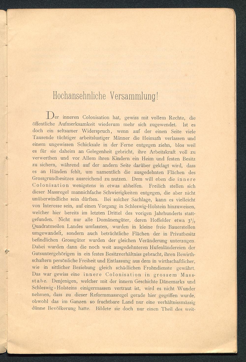 Der inneren Colonisation hat, gewiss mit vollem Rechte, dieöffentliche Aufmerksamkeit wiederum mehr sich zugewendet. Ist esdoch ein seltsamer Widerspruch, wenn auf der einen Seite vieleTausende tüchtiger arbeitslustiger Männer die Heimath verlassen undeinem ungewissen Schicksale in der Ferne entgegen ziehn, blos weiles für sie daheim an Gelegenheit gebricht, ihre Arbeitskraft voll zuverwerthen und vor Allem ihren Kindern ein Heim und festen Besitzzu sichern, während auf der andern Seite darüber geklagt wird, dasses an Händen fehlt, um namentlich die ausgedehnten Flächen desGrossgrundbesitzes ausreichend zu nutzen. Dem will eben die innereColonisation wenigstens in etwas abhelfen. Freilich stellen sichdieser Massregel mannichfache Schwierigkeiten entgegen, die aber nichtunüberwindliche sein dürften. Bei solcher Sachlage, kann es vielleichtvon Interesse sein, auf einen Vorgang in Schleswig-Holstein hinzuweisen,welcher hier bereits im letzten Drittel des vorigen Jahrhunderts statt-gefunden. Nicht nur alle Domänengüter, deren Hoffelder etwa 3 1 /»Ouadratmeilen Landes umfassten, wurden in kleine freie Bauerstellenumgewandelt, sondern auch beträchtliche Flächen der in Privatbesitzbefindlichen Grossgüter wurden der gleichen Veränderung unterzogen.Dabei wurden dann die noch weit ausgedehnteren Hufenländereien derGutsuntergehörigen in ein festes Besitzverhältniss gebracht, ihren Bewirth-schaftern persönliche Freiheit und Entlassung aus dem in wirthschaftlicher,wie in sittlicher Beziehung gleich schädlichen Frohndienste gewährt.Das war gewiss eine innere Colonisation in grossem Mass-stabe. Denjenigen, welcher mit der innern Geschichte Dänemarks undSchleswig - Holsteins einigermassen vertraut ist, wird es nicht Wundernehmen, dass zu dieser Reformmassregel gerade hier gegriffen wurde,obwohl das im Ganzen so fruchtbare Land nur eine verhältnissmässigdünne Bevölkerung hatte. Bildete sie doch nur einen Theil des weit-