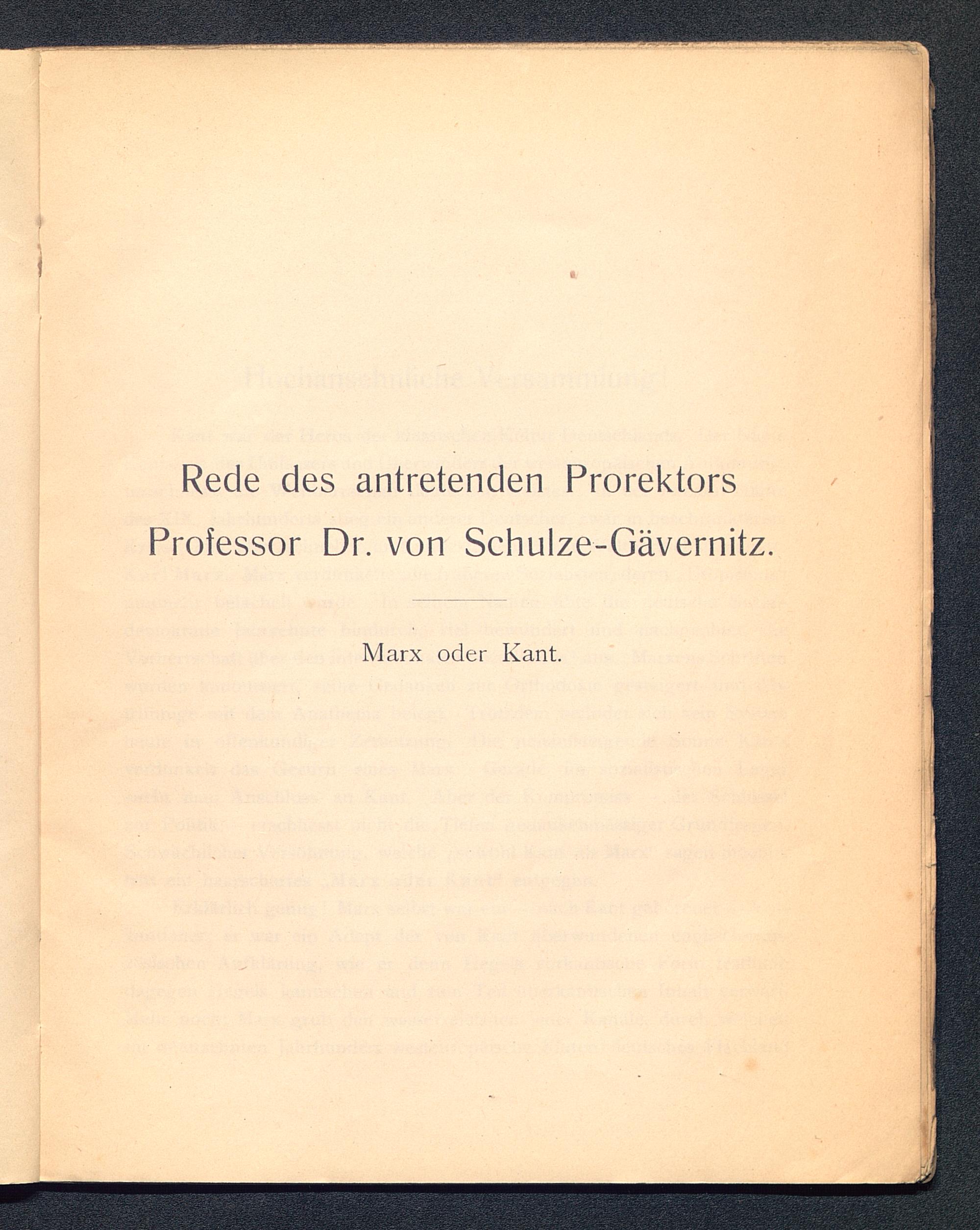 Marx oder Kant : Rede, gehalten in d. Kunst- u. Festhalle am 9. Mai 1908 bei d. öffentl. Feier d. Übergabe d. Prorektorats d. Univ. Freiburg i. Br.