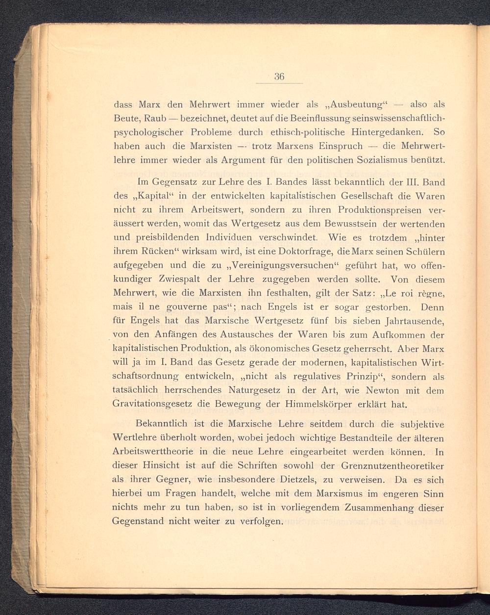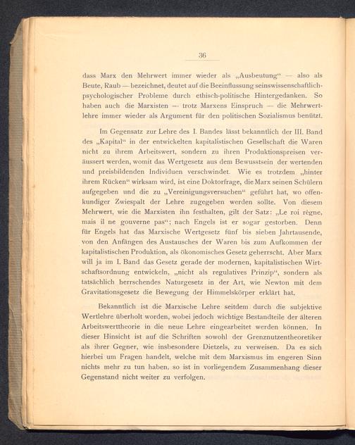 dass Marx den Mehrwert immer wieder als „Ausbeutung“ — also alsBeute, Raub — bezeichnet, deutet auf die Beeinflussung seinswissenschaftlich-psychologischer Probleme durch ethisch-politische Hintergedanken. Sohaben auch die Marxisten — trotz Marxens Einspruch — die Mehrwert-lehre immer wieder als Argument für den politischen Sozialismus benützt.