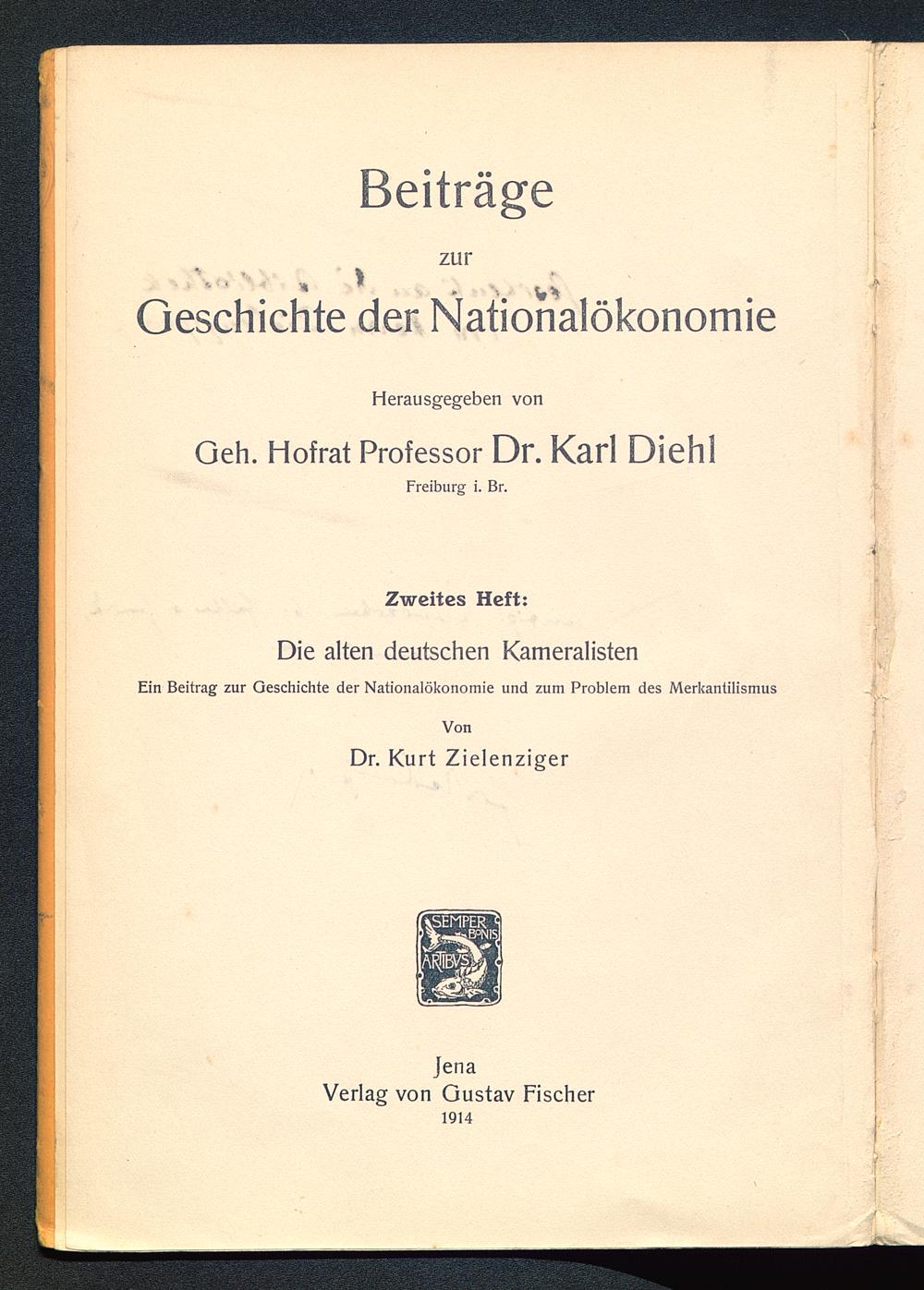 Ein Beitrag zur Geschichte der Nationalökonomie und zum Problem des Merkantilismus
