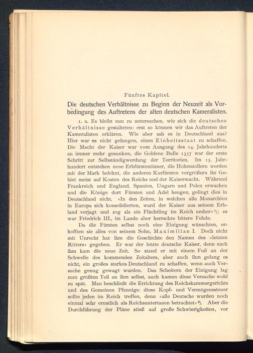 Die deutschen Verhältnisse zu Beginn der Neuzeit als Vor-bedingung des Auftretens der alten deutschen Kameralisten.