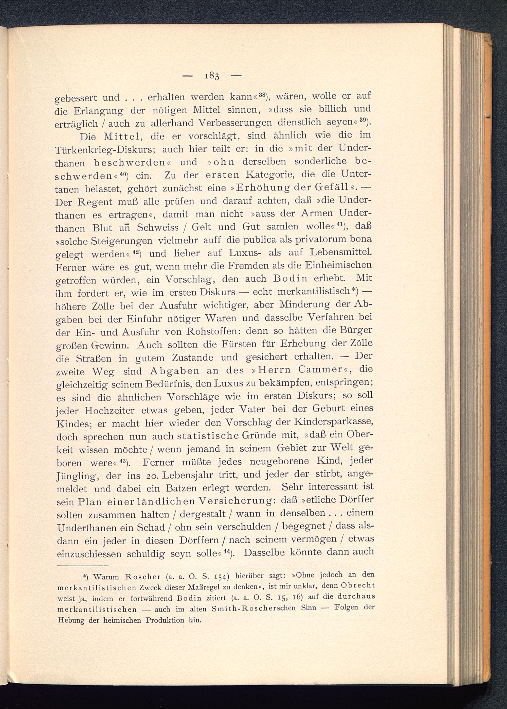 *) 'Warum Roscher (a. a. O. S. 154) hierüber sagt: »Ohne jedoch an denmerkantilistisclien Zweck dieser Maßregel zu denken«, ist mir unklar, denn Obrechtweist ja, indem er fortwährend Bodin zitiert (a. a. O. S. 15, 16) auf die durchausmerkantilistischen — auch im alten Smith-Roscherschen Sinn — Folgen derHebung der heimischen Produktion hin.