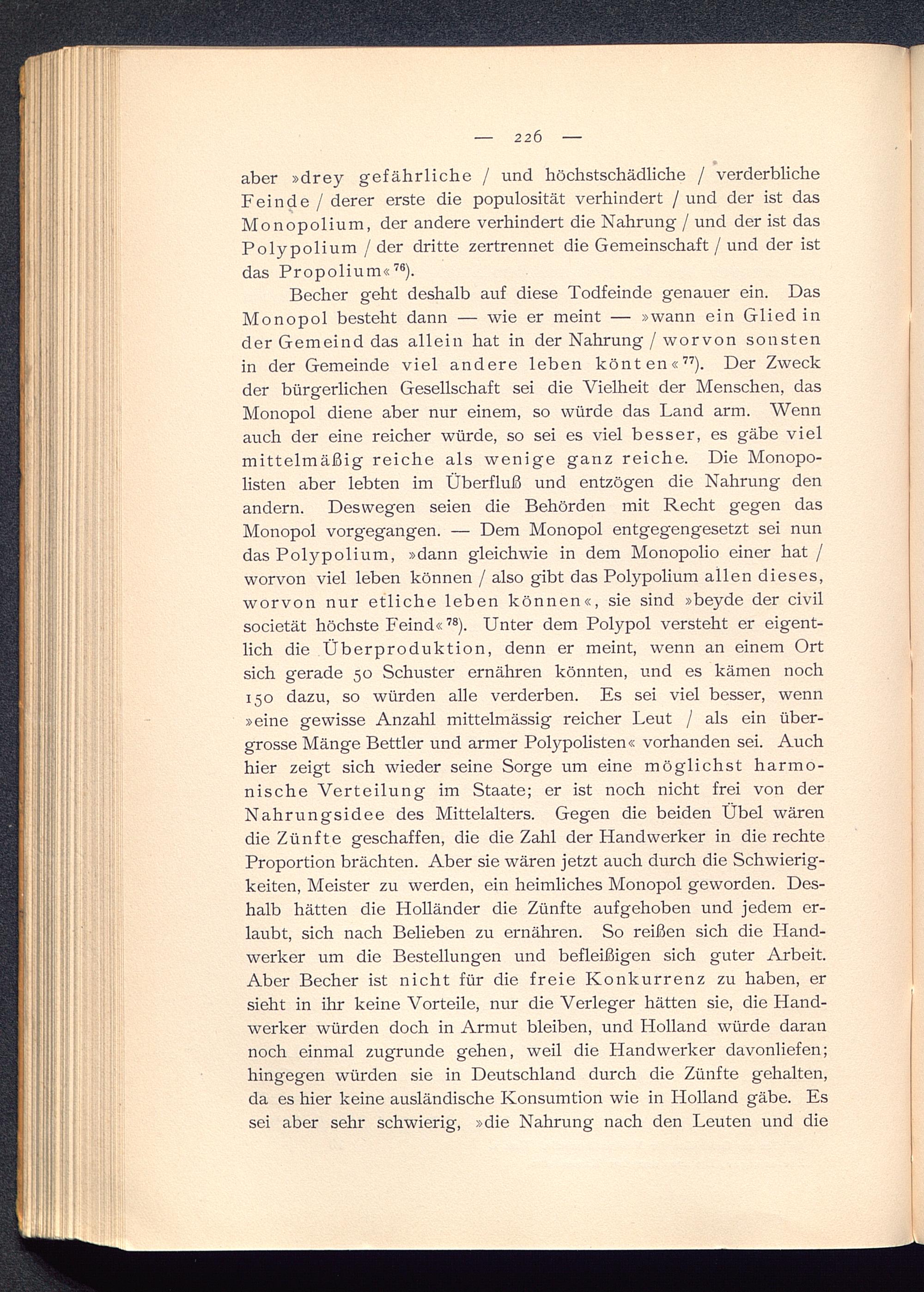 aber »drey gefährliche / und höchstschädliche / verderblicheFeinde / derer erste die populosität verhindert / und der ist dasMonopolium, der andere verhindert die Nahrung / und der ist dasPolypolium / der dritte zertrennet die Gemeinschaft / und der istdas Propolium« 76 ).