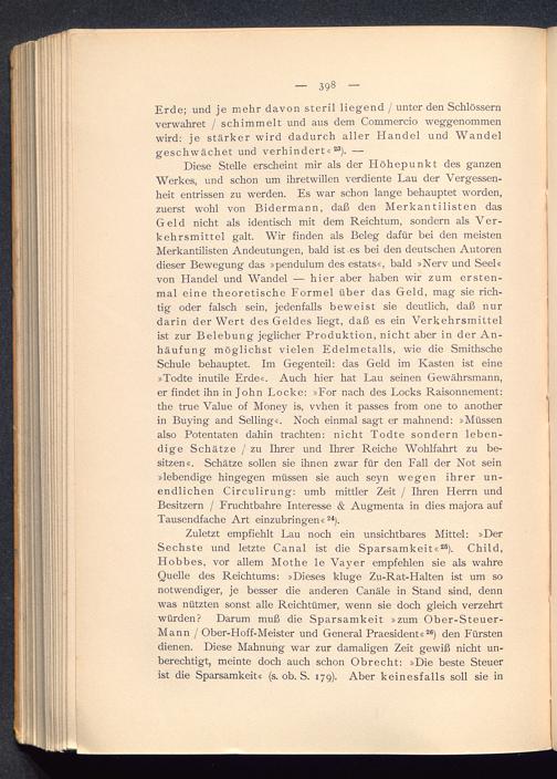 Erde; und je mehr davon steril liegend / unter den Schlössernverwahret / schimmelt und aus dem Commercio weggenommenwird: je stärker wird dadurch aller Handel und Wandelgeschwächet und verhindert« 23 ). —
