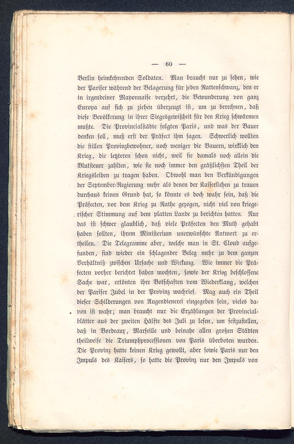 Berlin heimkehrenden Soldaten. Man braucht nur zu sehen, wieder Pariser während der Belagerung für jeden Rattenschwanz, den erin irgendeiner Mayonnaise verzehrt, die Bewunderung von ganzEuropa auf sich zu ziehen überzeugt ist, um zu berechnen, daßdiese Bevölkerung in ihrer Siegesgewißheit sür den Krieg schwärmeumußte. Die Provincialstädte folgten Paris , und was der Bauerdenken soll, muß erst der Präfect ihm sagen. Schwerlich wolltendie stillen Provinzbewohner, noch weniger die Bauern, wirklich denKrieg, die letzteren schon nicht, weil sie damals noch allein dieBlutsteuer zahlten, wie sie noch immer den gräßlichsten Theil derKriegsleiden zu trageu haben. Obwohl man den Verkündigungender September-Regieruug mehr als denen der Kaiserlichen zu trauendurchaus keinen Grund hat, so könnte es doch wahr sein, daß diePräfecten, vor dem Krieg zu Rathe gezogen, nicht viel von kriege-, rischer Stimmung auf dem vlatteu Lande zu berichten hatten. Nurdas ist schwer glaublich, daß viele Präfecten den Muth gehabthaben sollten, ihrem Ministerium unerwünschte Antwort zu er-theilen. Die Telegramme aber, welche man in St. Cloud aufge-funden, sind wieder ein schlagender Beleg mehr zu dem ganzenVerhältniß zwischen Ursache und Wirkung. Wie immer die Prä-fecten vorher berichtet haben mochten, fowie der Krieg beschlosseneSache war, ertönten ihre Botschaften vom Wiederklang, welchender Pariser Jubel in der Provinz wachrief. Mag auch ein Theildieser Schilderungen von Augendienern eingegeben sein, vieles da-. von ist wahr; man braucht nur die Erzählungen der Provincial-blätter aus der zweiten Hälfte des Juli zu lesen, um festzustellen,daß in Bordeaux, Marseille und beinahe allen großen Städtentheilweise die Triumphprocessionen von Paris überboten wurden.Die Provinz hatte keinen Krieg gewollt, aber sowie Paris nur denImpuls des Kaisers, so hatte die Provinz nur den Impuls von