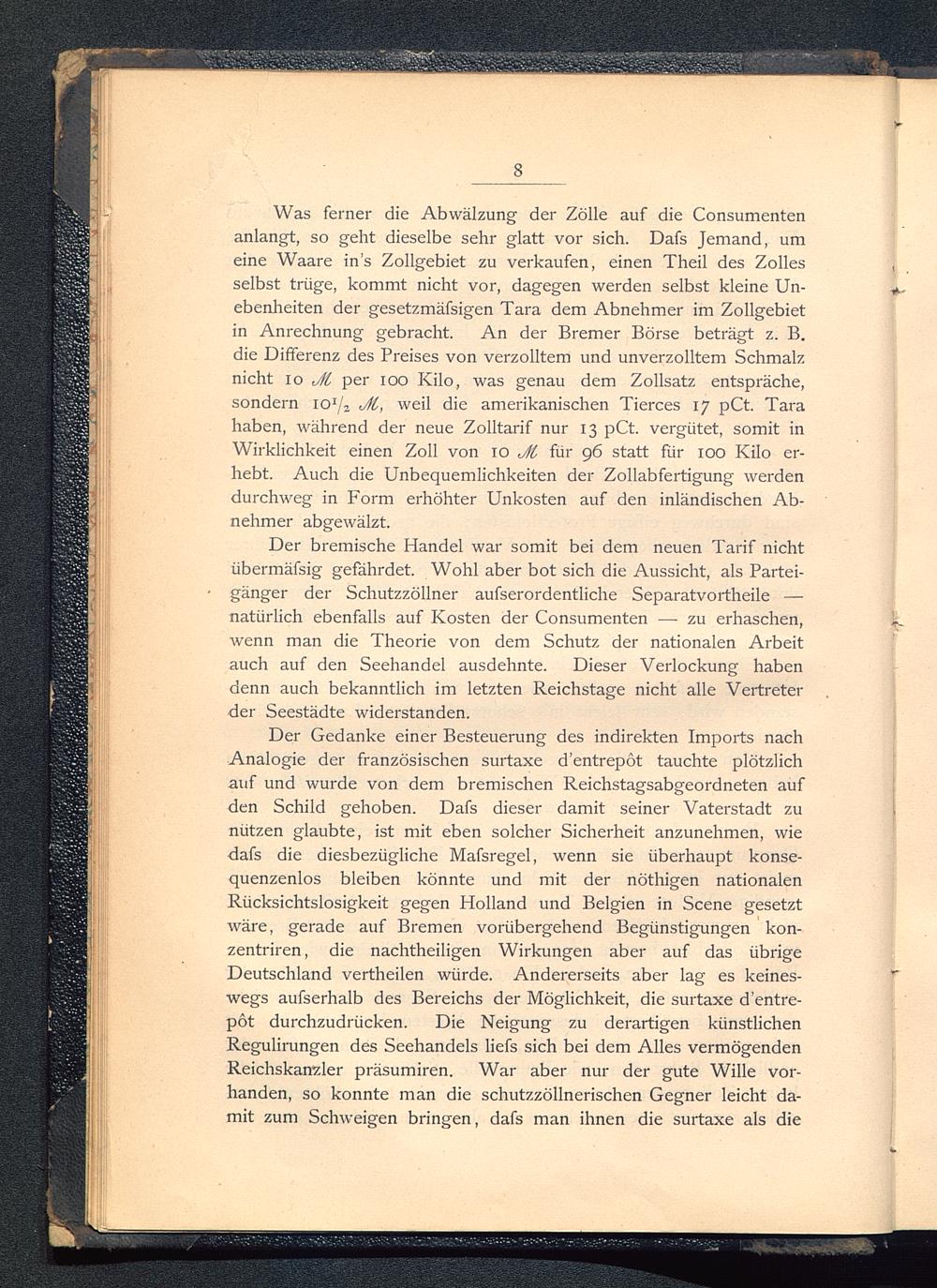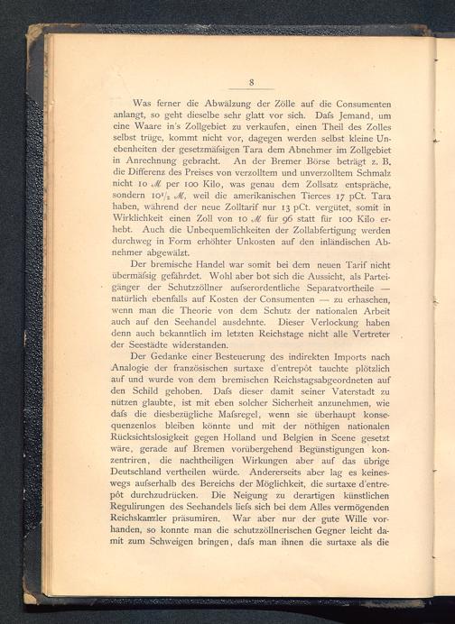Der Gedanke einer Besteuerung des indirekten Imports nachAnalogie der französischen surtaxe d’entrepot tauchte plötzlichauf und wurde von dem bremischen Reichstagsabgeordneten auf !