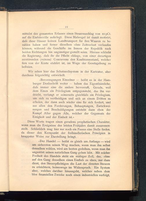 Diese Worte tragen einen geradezu prophetischen Charakter,wenn man die Ereignisse des letzten Frühjahrs damit zusammen-stellt. Schliefslich mag hier nur noch ein Passus eine Stelle finden,da dieser den Kernpunkt der freihändlerischen Principien inknappster Weise zur Darstellung bringt.