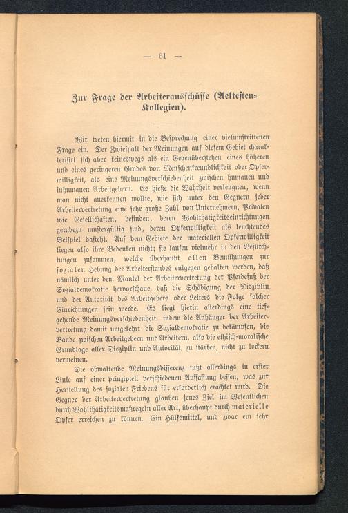 Zur Frage der Arbeiteransschüsse (Aeltesten-Kollegien).