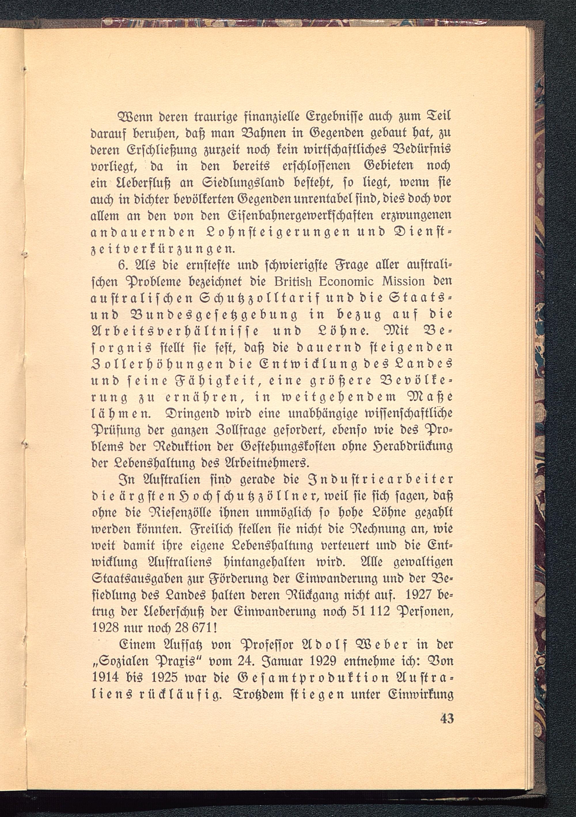 Einem Aufsah von Professor Adolf Weber in der„Sozialen Praxis" vom 24. Januar 1929 entnehme ich: Von1914 bis 1925 war die Gesamtproduktion Austra-liens rückläufig. Trotzdem stiegen unter Einwirkung