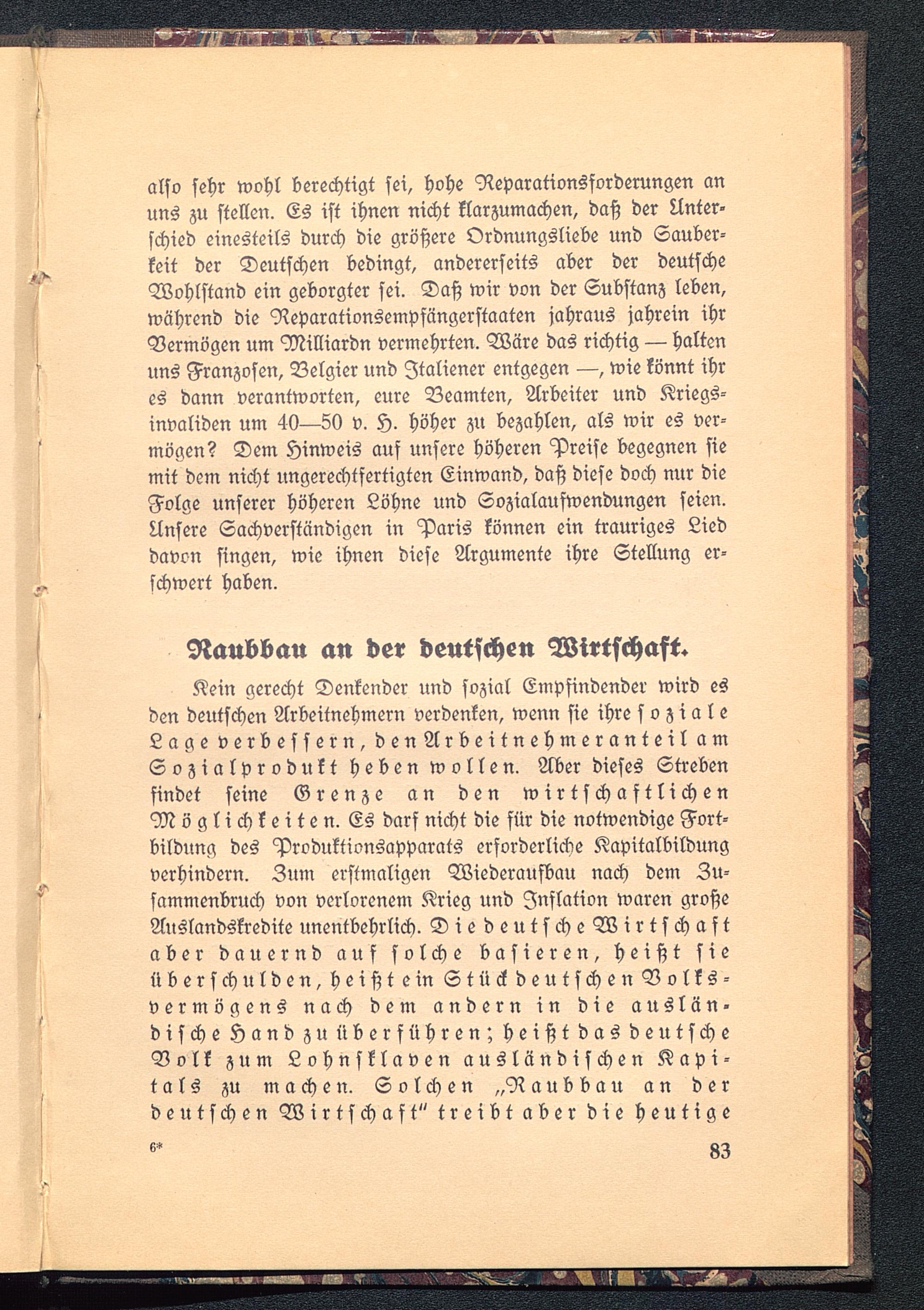 Kein gerecht Denkender und sozial Empfindender wird esden deutschen Arbeitnehmern verdenken, wenn sie ihre sozialeLage verbessern, den Arbeitnehmeranteil amSozialprodukt heben wollen. Aber dieses Strebenfindet seine Grenze an den wirtschaftlichenMöglichkeiten. Cs darf nicht die für die notwendige Fort-bildung des Produktionsapparats erforderliche Kapitalbildungverhindern. Zum erstmaligen Wiederaufbau nach dem Zu-sammenbruch von verlorenem Krieg und Inflation waren großeAuslandskredite unentbehrlich. DiedeutscheWirtschaftaber dauernd auf solche basieren, heißt sieü verschulden, heißt ein Stück deutschen Volks-vermögens nach dem andern in die auslän-dische Hand zu überführen;heißt das deutscheVolk zum Lohnsklaven ausländischen Kapi-tals zu machen. Solchen „Raubbau an derdeutschen Wirtschaft" treibt aber die heutige