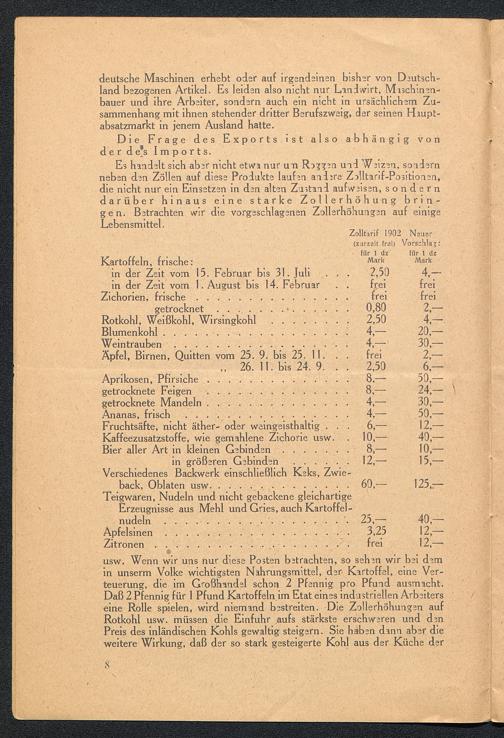 Es handelt sich aber nicht etwa nur um Roggen un dW eizen, sondernneben den Zöllen auf diese Produkte laufen andere Zolltarif-Positionen,die nicht nur ein Einsetzen in den alten Zustand aufweisen, sonderndarüber hinaus eine starke Zollerhöhung brin-gen. Betrachten wir die vorgeschlagenen Zollerhöhungen auf einigeLebensmittel.