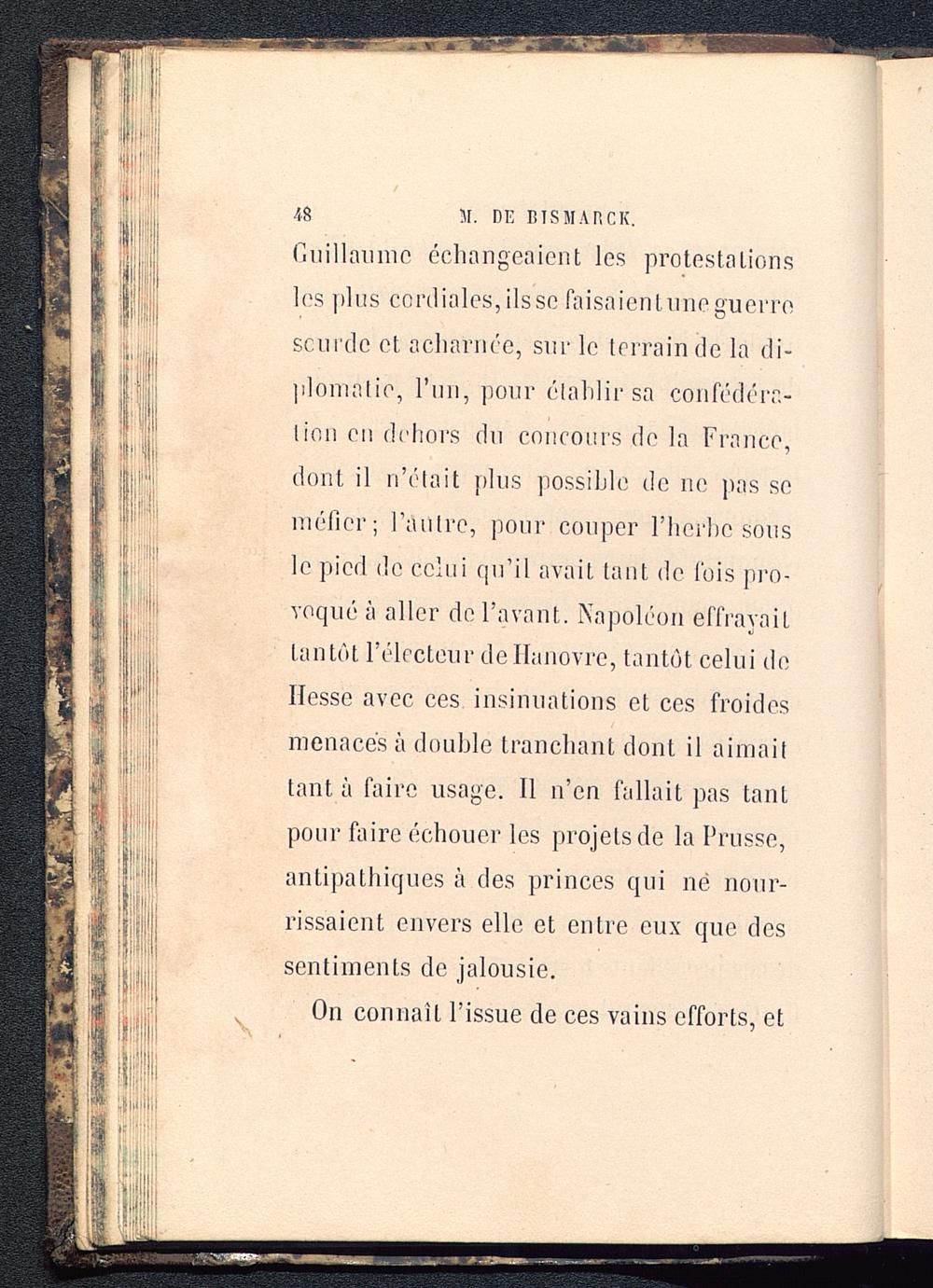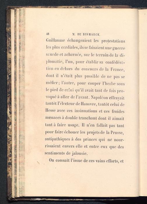 fiuillaumc échangeaient les protestationsles plus cordiales, ils se faisaientnne guerrescni dc et acharnée, sur le terrain de la di-plomatie, l’nn, pour établir sa confédéra-tion en dehors du concours de la France, dont il n’était plus possible de ne pas seméfier; l’autre, pour couper l'herbe sousle pied de celui qu’il avait tant de fois pro-voqué à aller de l’avant. Napoléon effrayaiLtantôt l’électeur de Hanovre, tantôt celui deHesse avec ces insinuations et ces froidesmenacés à double tranchant dont il aimaittanta faire usage. Il n’en fallait pas tantpour faire échouer les projets de la Prusse, antipathiques à des princes qui né nour-rissaient envers elle et entre eux que dessentiments de jalousie.