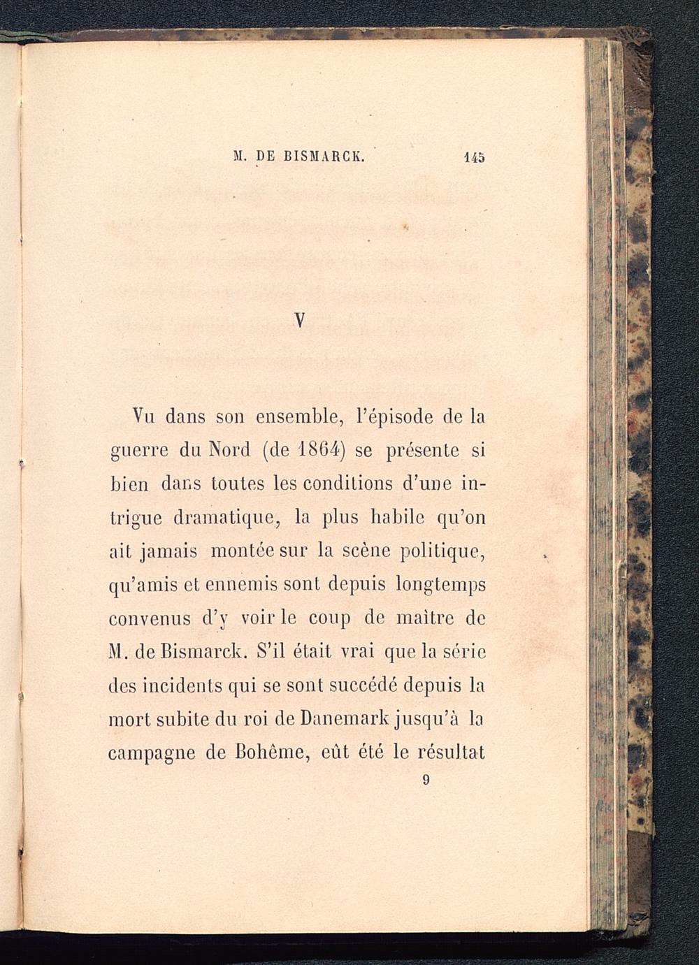 Vu dans son ensemble, l’épisode de laguerre du Nord (de 1804) se présente sibien dans toutes les conditions d’une in-trigue dramatique, la plus habile qu’onait jamais montée sur la scène politique,qu’amis et ennemis sont depuis longtempsconvenus d’y voir le coup de maître deM. de Bismarck. S’il était vrai que la sériedes incidents qui se sont succédé depuis lamort subite du roi de Danemark jusqu’à lacampagne de Bohême, eût été le résultat
