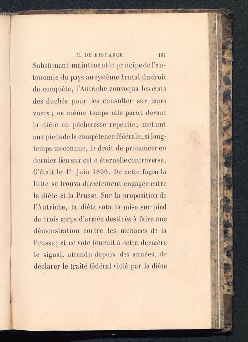 Substituant maintcnantlc principe de l’au-tonomie du pays au système brutal du droitde conquête, l'Autriche convoqua les étatsdes duchés pour les consulter sur leursvœux ; en même temps elle parut devantla diète en pécheresse repentie, mettantaux pieds de la compétence fédérale, si long-temps méconnue, le droit de prononcer endernier lieu sur cette éternelle controverse.C’était le 1 er juin 1866. De cette façon lalutte se trouva directement engagée entrela diète et la Prusse. Sur la proposition del’Autriche, la diète vota la mise sur piedde trois corps d’armée destinés à faire unedémonstration contre les menaces de laPrusse; et ce vote fournit à cette dernièrele signal, attendu depuis des années, dedéclarer le traité fédéral violé par la diète