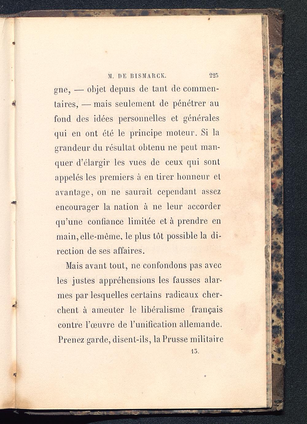 Mais avant tout, ne confondons pas avecles justes appréhensions les fausses alar-mes par lesquelles certains radicaux cher-client à ameuter le libéralisme françaiscontre l’œuvre de l’unilication allemande.Prenez garde, disent-ils, la Prusse militaire