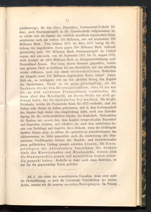 Ad. 3. Als dritte der wesentlicheren Ursachen, wenn auch nichtfür Herbeiführung, so doch für bedeutende Verschärfung der letztenKrisis, nennen wir die neueren socialen Bewegungen. Im Prinzip .