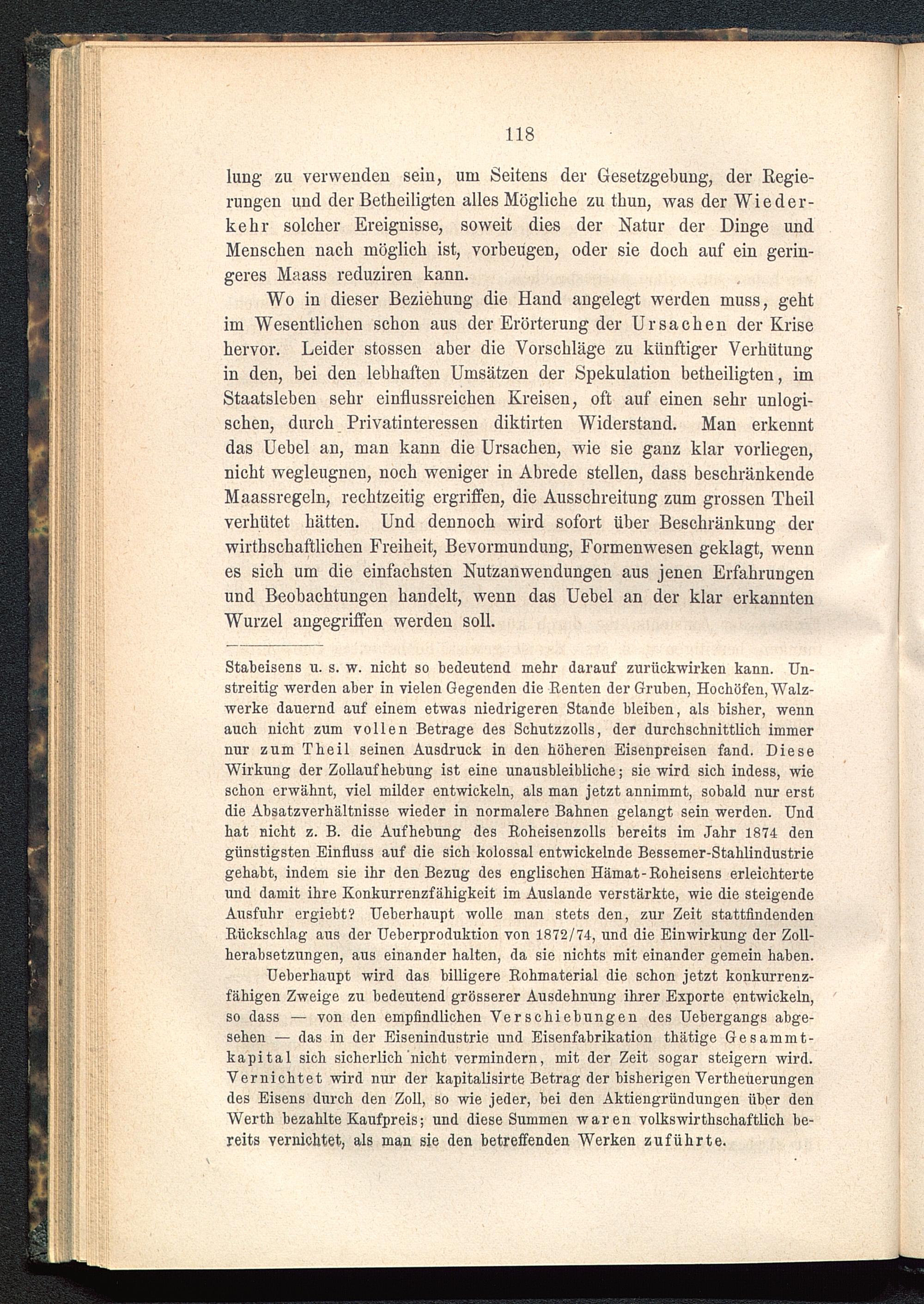 Ueberhaupt wird das billigere Rohmaterial die schon jetzt konkurrenz-fähigen Zweige zu bedeutend grösserer Ausdehnung ihrer Exporte entwickeln,so dass — von den empfindlichen Verschiebungen des Uebergangs abge-sehen — das in der Eisenindustrie und Eisenfabrikation thätige Gesammt-kapital sich sicherlich nicht vermindern, mit der Zeit sogar steigern wird.Vernichtet wird nur der kapitalisirte Betrag der bisherigen Vertheüerungendes Eisens durch den Zoll, so wie jeder, bei den Aktiengründungen über denWerth bezahlte Kaufpreis; und diese Summen waren volkswirthschaftlieh be-reits vernichtet, als man sie den betreffenden Werken zuführte.