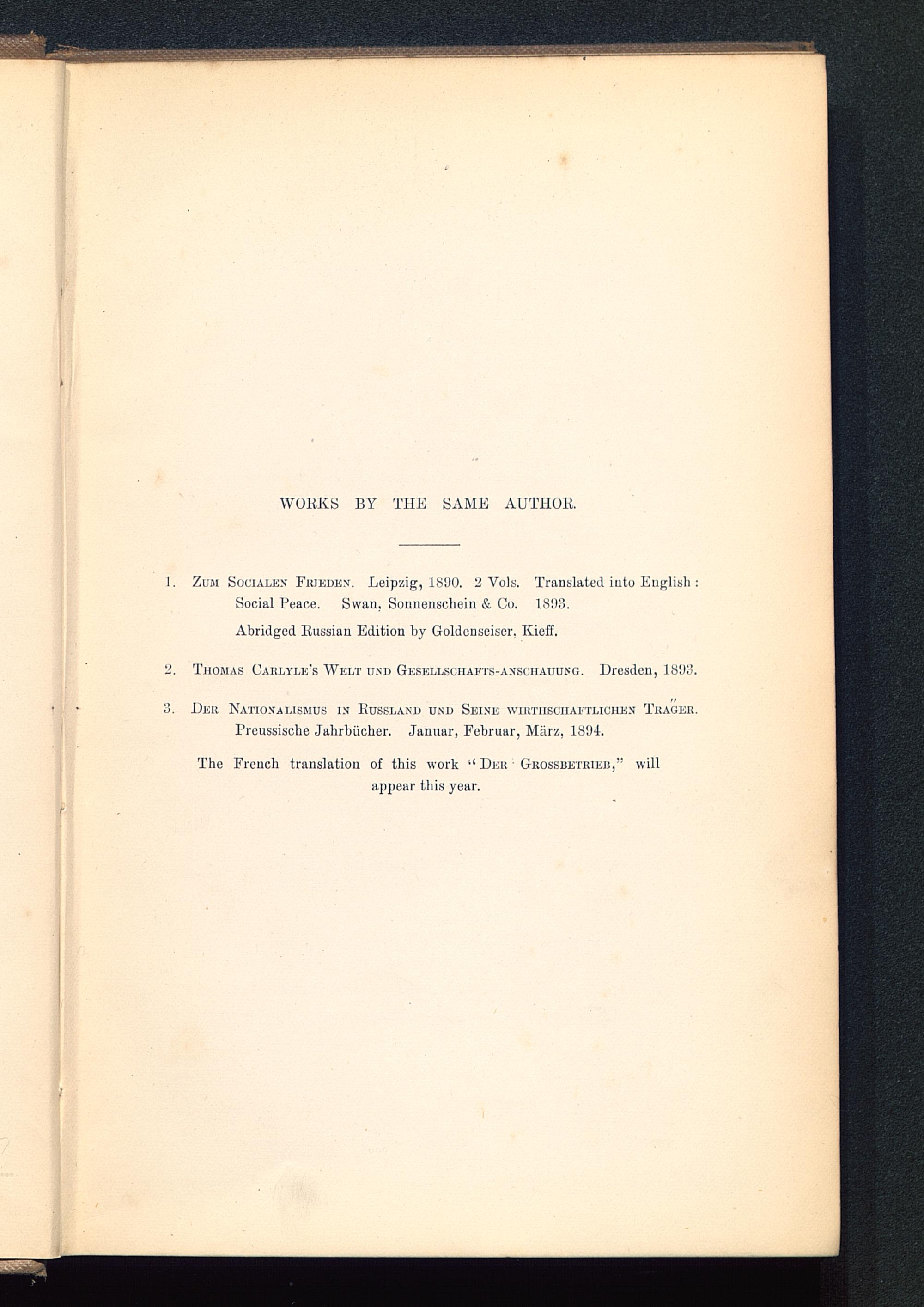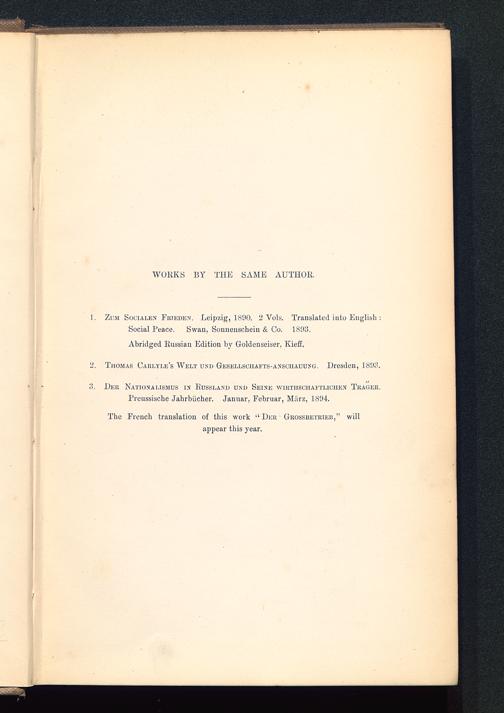 1. Zum Socialen Frjeden. Leipzig , 1890. 2 Vols. Translated into English :