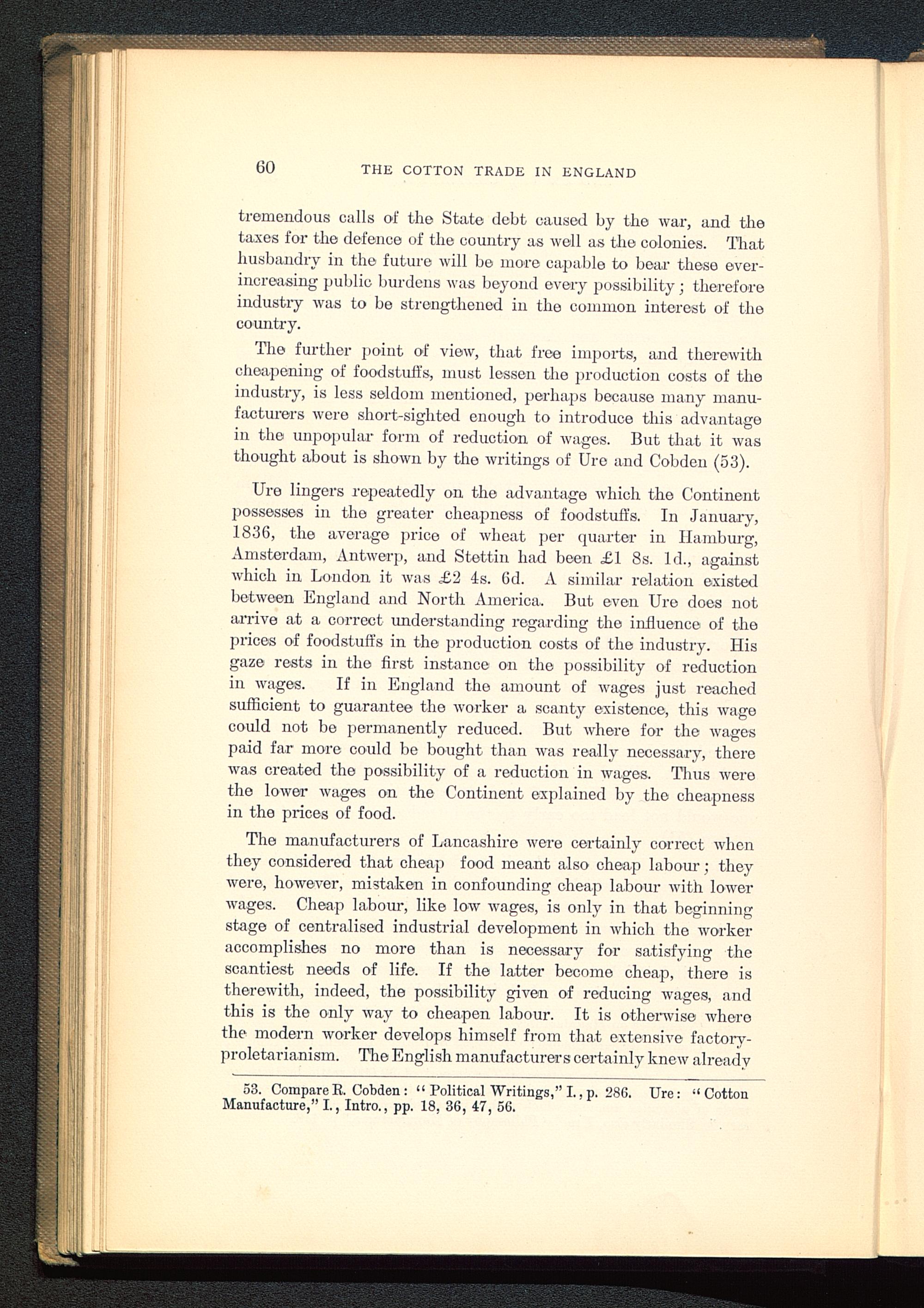 53. Compare R. Cobden : “ Political Writings,” I., p. 286. Ure: “CottonManufacture,” I., Intro., pp. 18, 36, 47, 56.