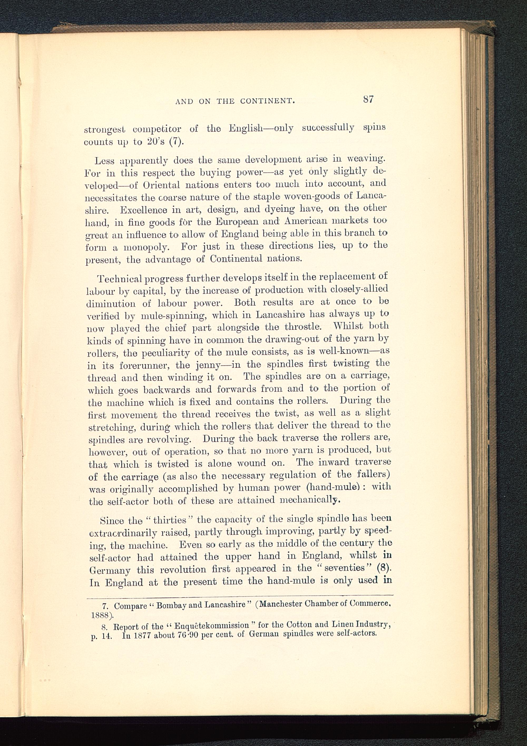 8. Report of the “ Enquctekoinmission ” for the Cotton aud Linen Industry,p. 14. In 1877 about 70'90 per cent, of German spindles were self-actors.