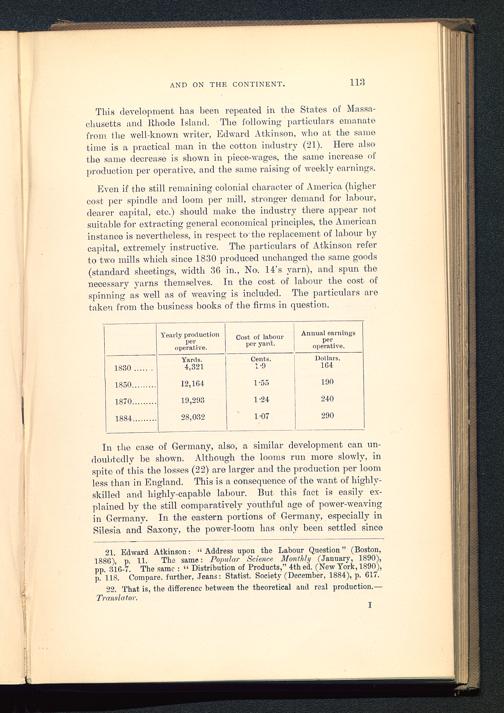 21. Edward Atkinson: “ Address upon the Labour Question ” (Boston ,1886), p. 11. The same: Popular Science Monthly (January, 1890),pp. 310-7. The same : “ Distribution of Products,” 4th ed. (New York, 1890),p. 118. Compare, further, Jeans: Statist. Society (December, 1884), p. 617.