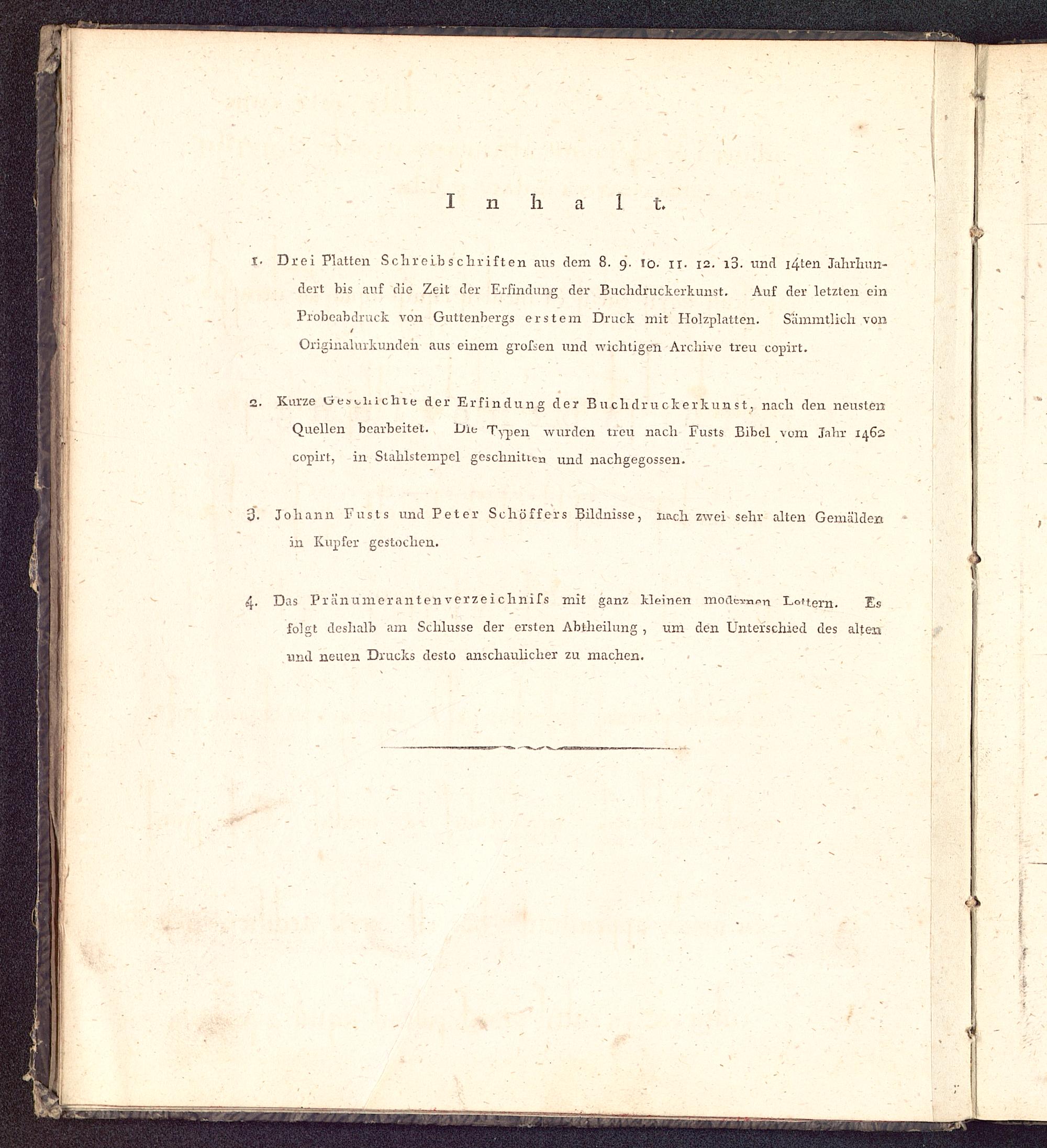 Drei Platten Schreibschriften aus dem 8. g. !0· 11· 12· 13· und i^ten Jahrhun-dert bis auf die Zeit der Erfindung der Buchdruckerkunst. Auf der letzten einProbeabdruck von Gutteubergs erstem Druck mit Holzplatten. Sämmtlich vonOriginalurkunden aus einem grossen und wichtigen Archive treu copirt.