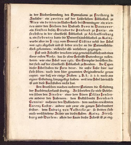 Êen !deutschen machen mehrere ßationen die Erfindungder Buchdruckerkunst streitig. Lo schrieben sie viele Pelebivten schon den S i n e se n ׳ einer dem &änen jAiklas Jenson•ein anderer den Italienern, dem Goldjchmidt Bernhard(pennini' mehrere den !!Holländern . dem vorhin ermähntenîfor en z Rost er. andere und z>rar ein ganzes Jahrhundertfrüher, dem Ludwig voti Talbecke zu• so stritten sichauch verschiedene Städte um diesenfjtubm. àainz. Straszbürg und it) a r l e m : allein der kaum dieser Lchrift ist zu eng.